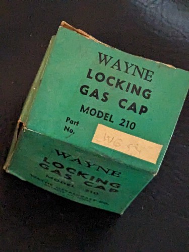 This fuel tank cap is new old stock, meaning it has not been used and is in excellent condition. It features a locking mechanism that provides extra security for your fuel tank. With this vintage Wayne locking gas cap, you can add a touch of nostalgia to your car while ensuring your fuel is safe and secure.