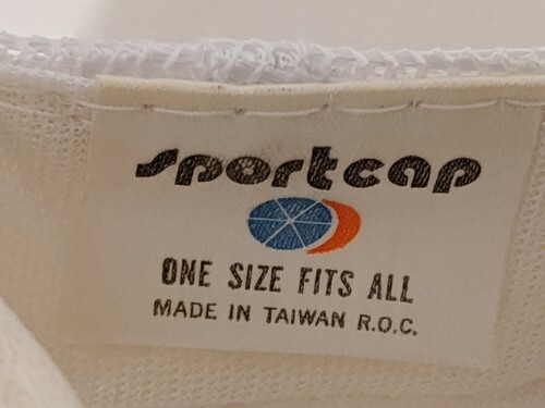 Zum Verkauf steht eine neue, alte, weiße Baseballkappe, Trucker-Mütze, Snapback aus Corduroy Mesh von Sportcap. Der Hut weist moglicherweise einen leichten Rostfleck auf.