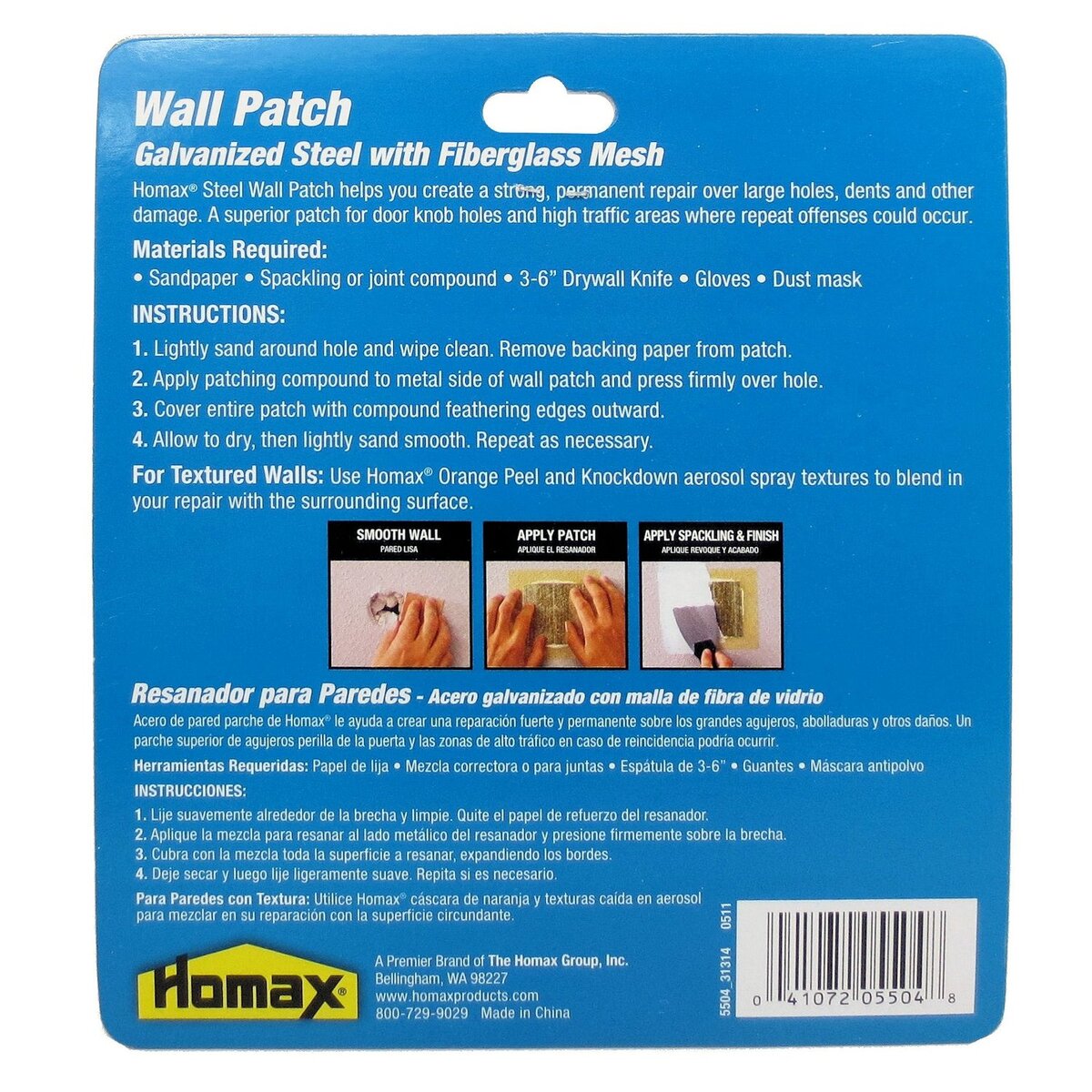 Homax Drywall Galvanized Heavy-Duty Self Adhesive Wall Patch, 4” x 4”