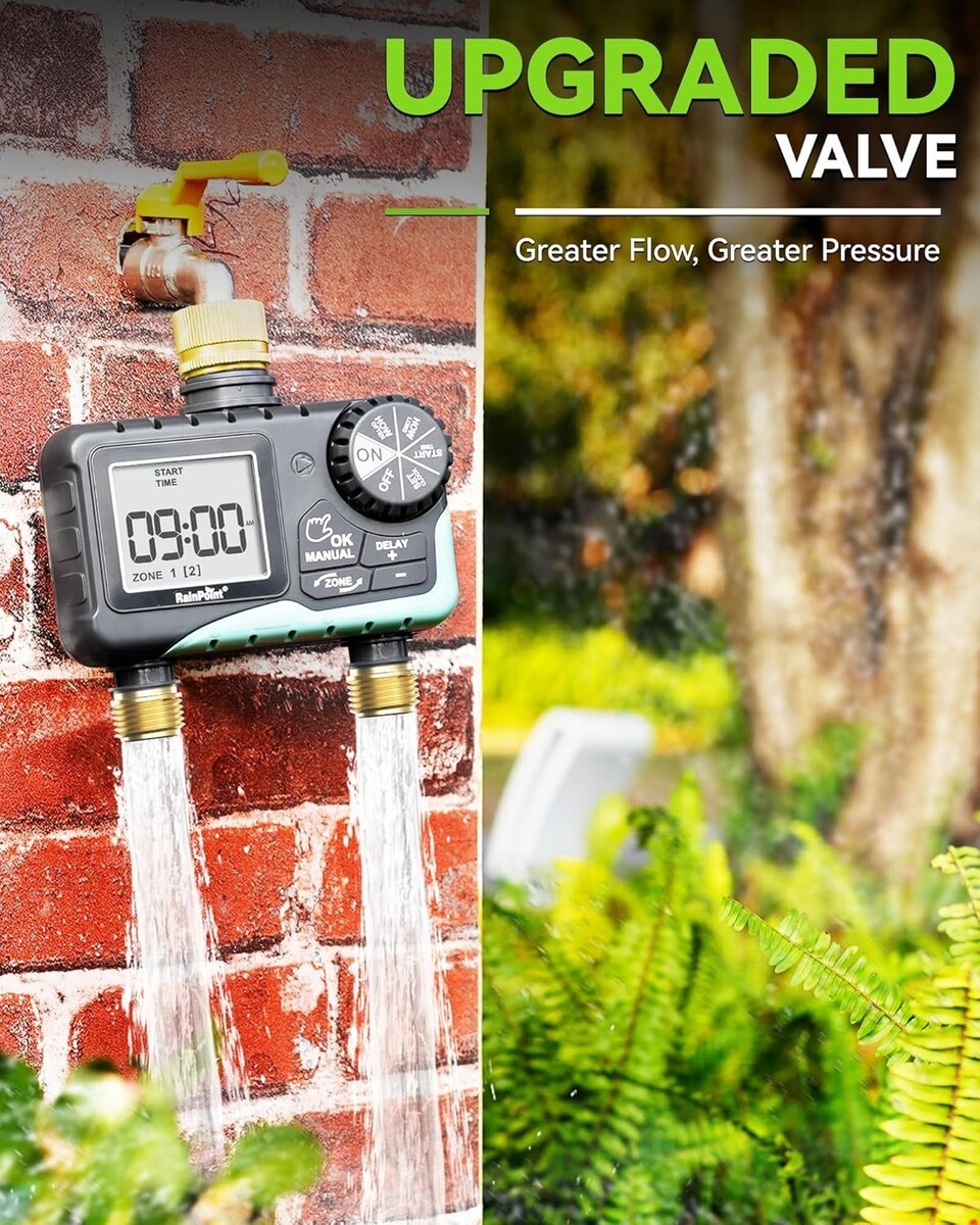 Compact 2 Zone Water Hose Timer with Manual Watering and Rain Delay Features