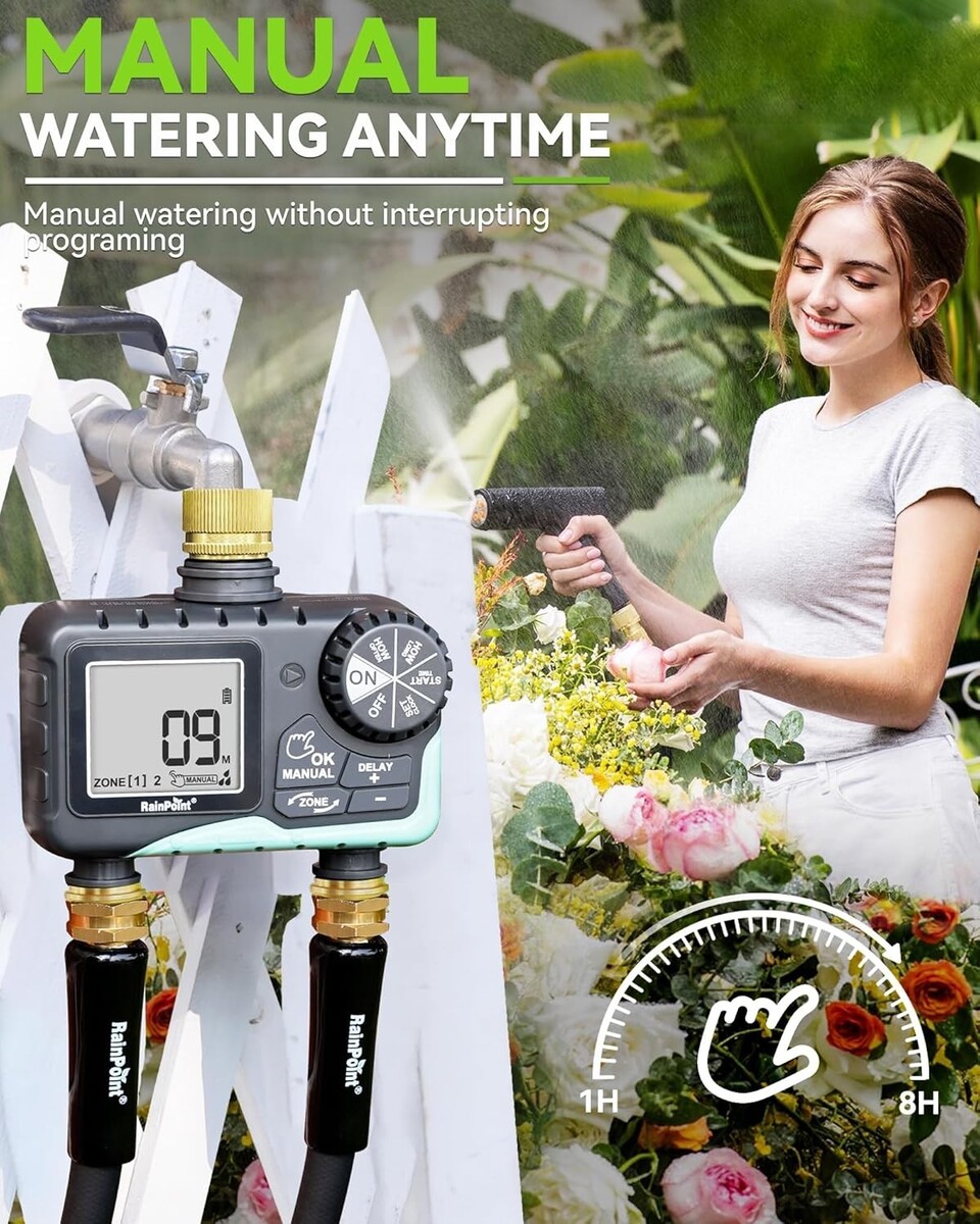 Manual Watering: Easily water your garden manually without interrupting your programmed schedule, ensuring flexibility at your fingertips.
