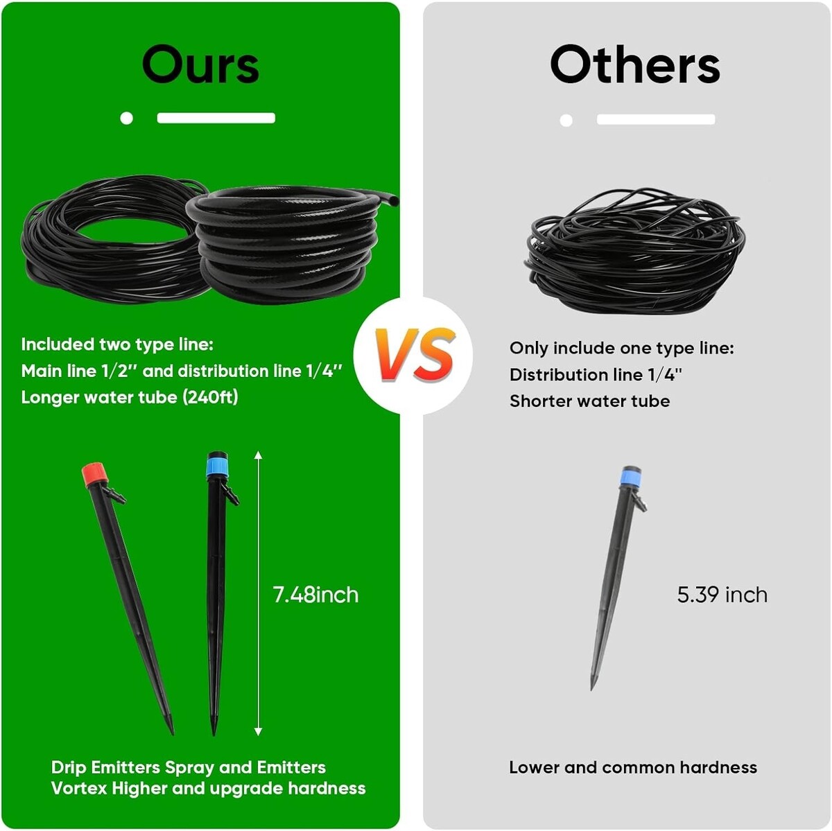 Upgraded Tubing Design: Enhanced main tubing diameter (1/2") supports high-water pressure for effective watering.