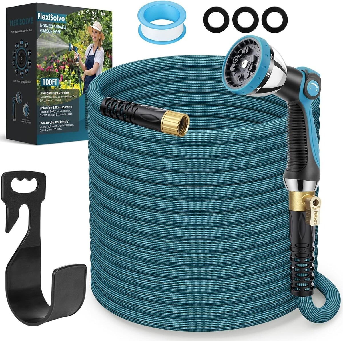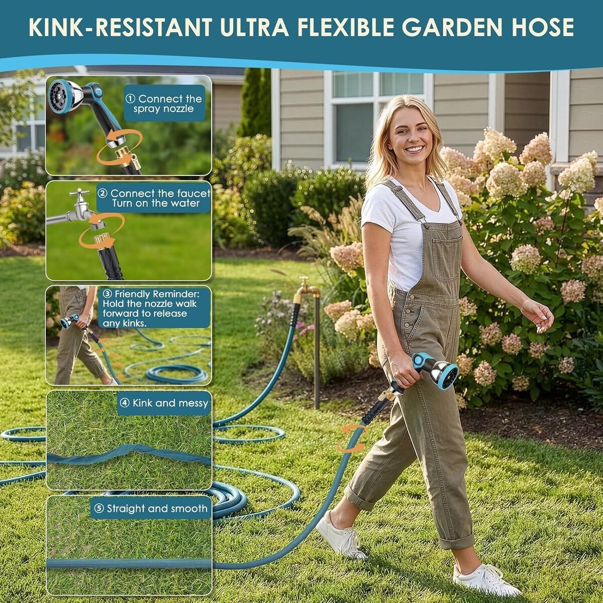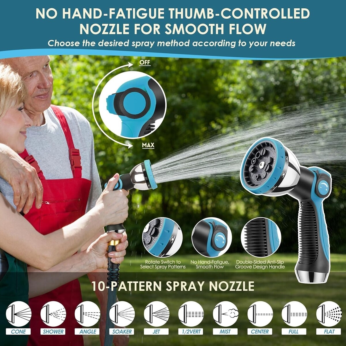100 ft Leakproof Garden Hose with 10-Pattern Spray Nozzle & Quick Shut-Off Valve