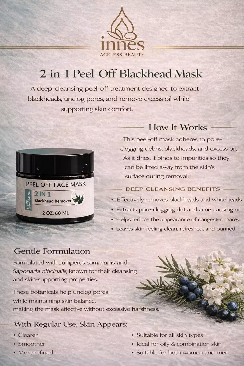 This 2-in-1 peel-off face mask was created to deeply cleanse pores and lift away buildup that can leave skin looking congested and uneven. Formulated with activated charcoal and botanical extracts, it helps draw out excess oil and impurities while leaving skin feeling smoother and refreshed.