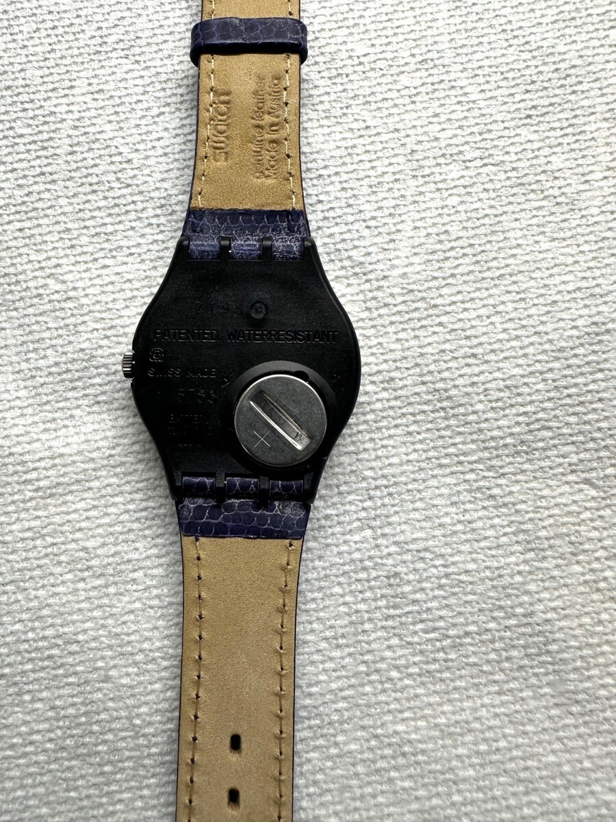The genuine Swatch leather straps are flexible and clean.