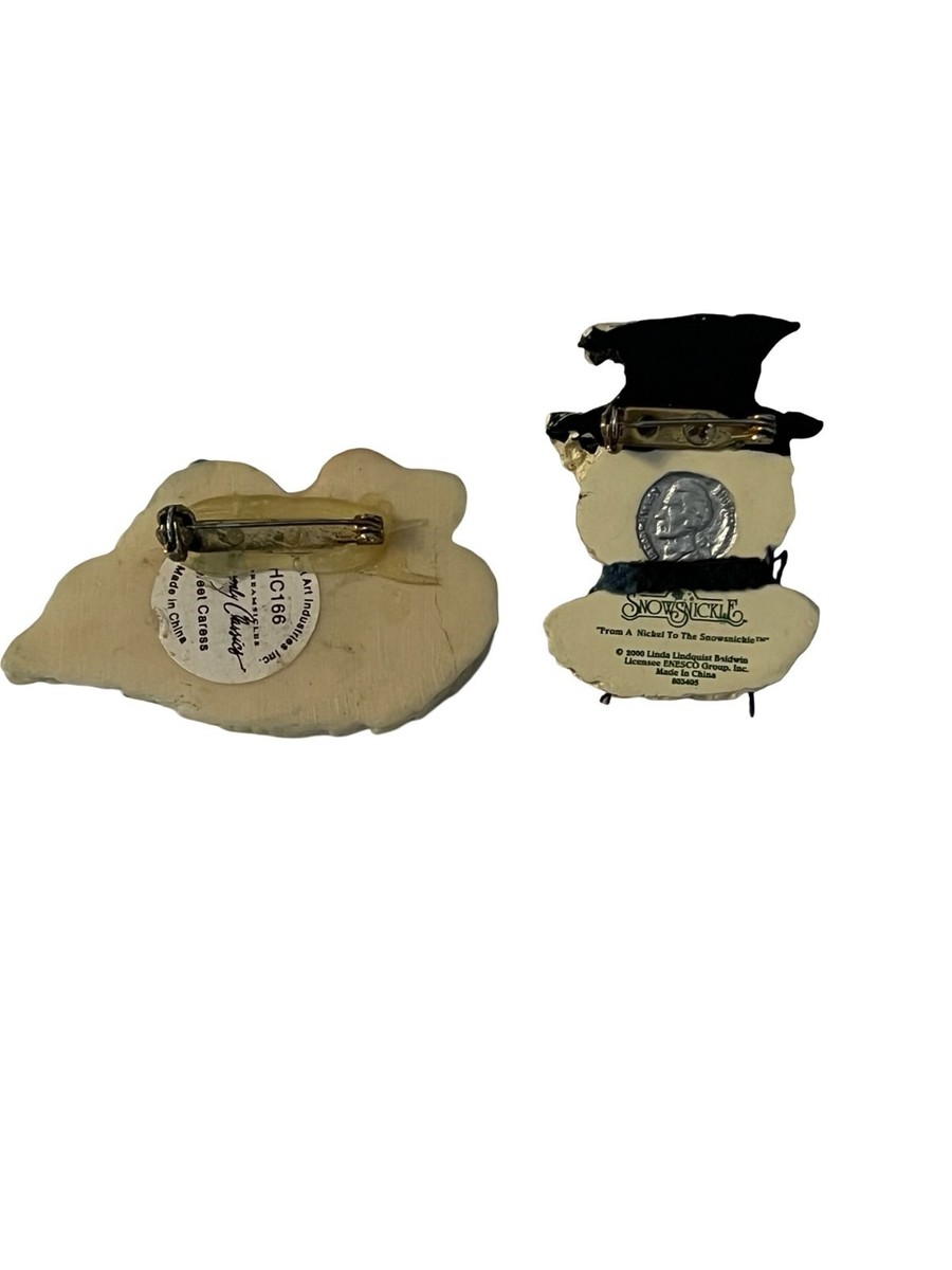 Snowsnickle Angel Snowman Brooch Set Enesco Linda Lindquist Baldwin Mid 2000s Pin