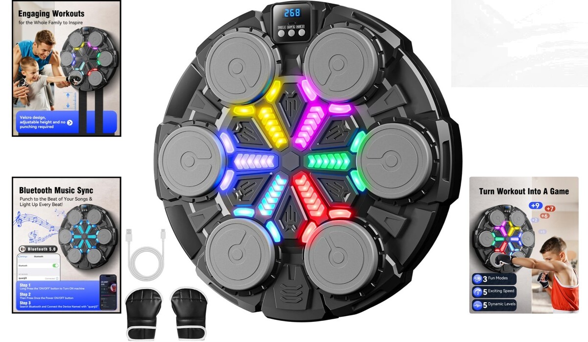 Space-Saving Punching Pad with Bluetooth & Rhythm Lights - Perfect for Any Home