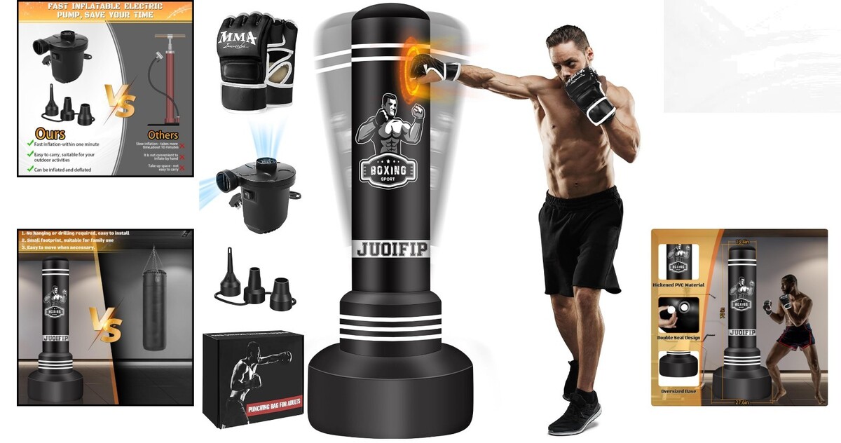 Durable Freestanding Boxing Bag, 70'' Height with Gloves, Electric Pump Included