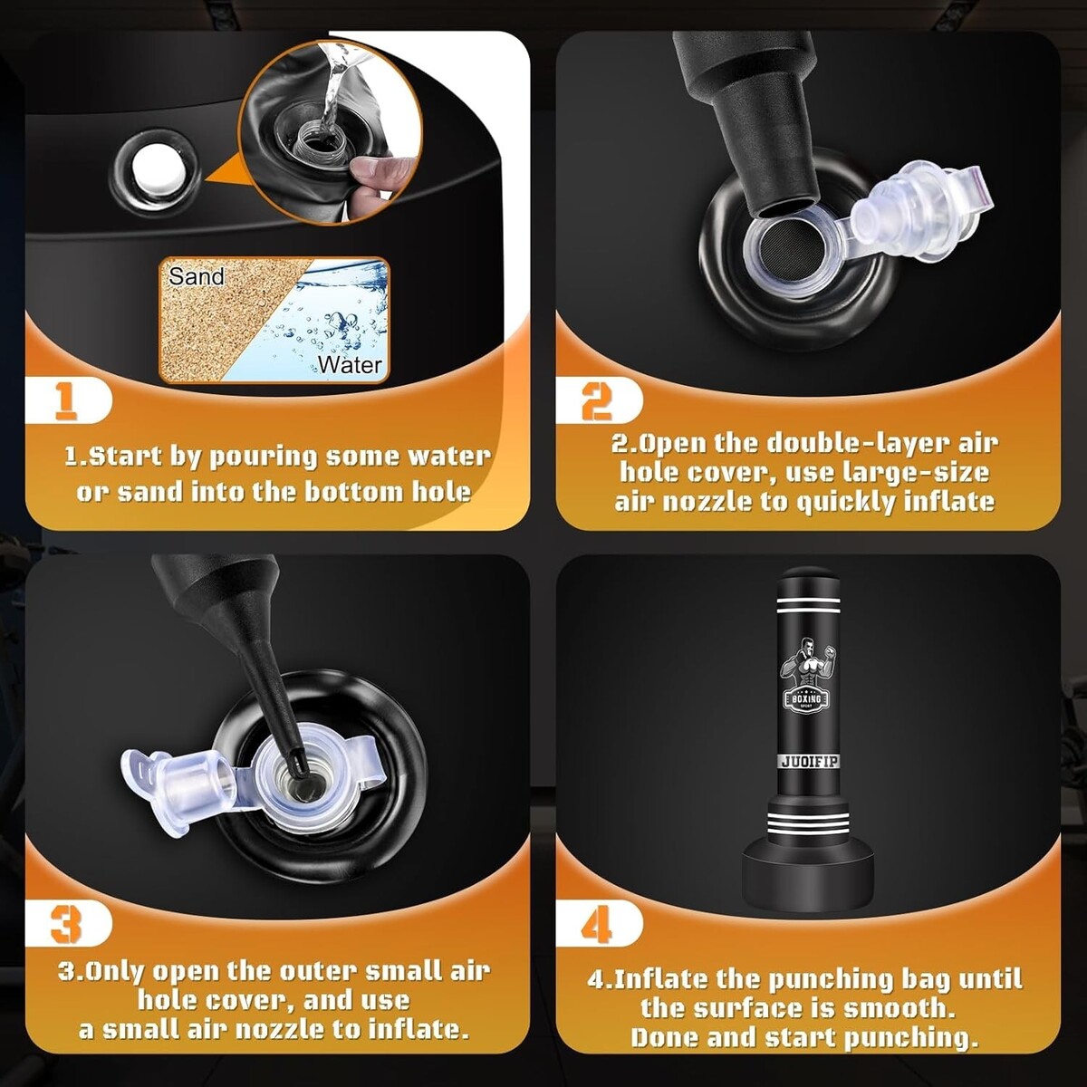 Material: Crafted from thickened PVC, our boxing bag is built to withstand vigorous punches and kicks, offering durability while providing an excellent return after impact for a realistic boxing experience.