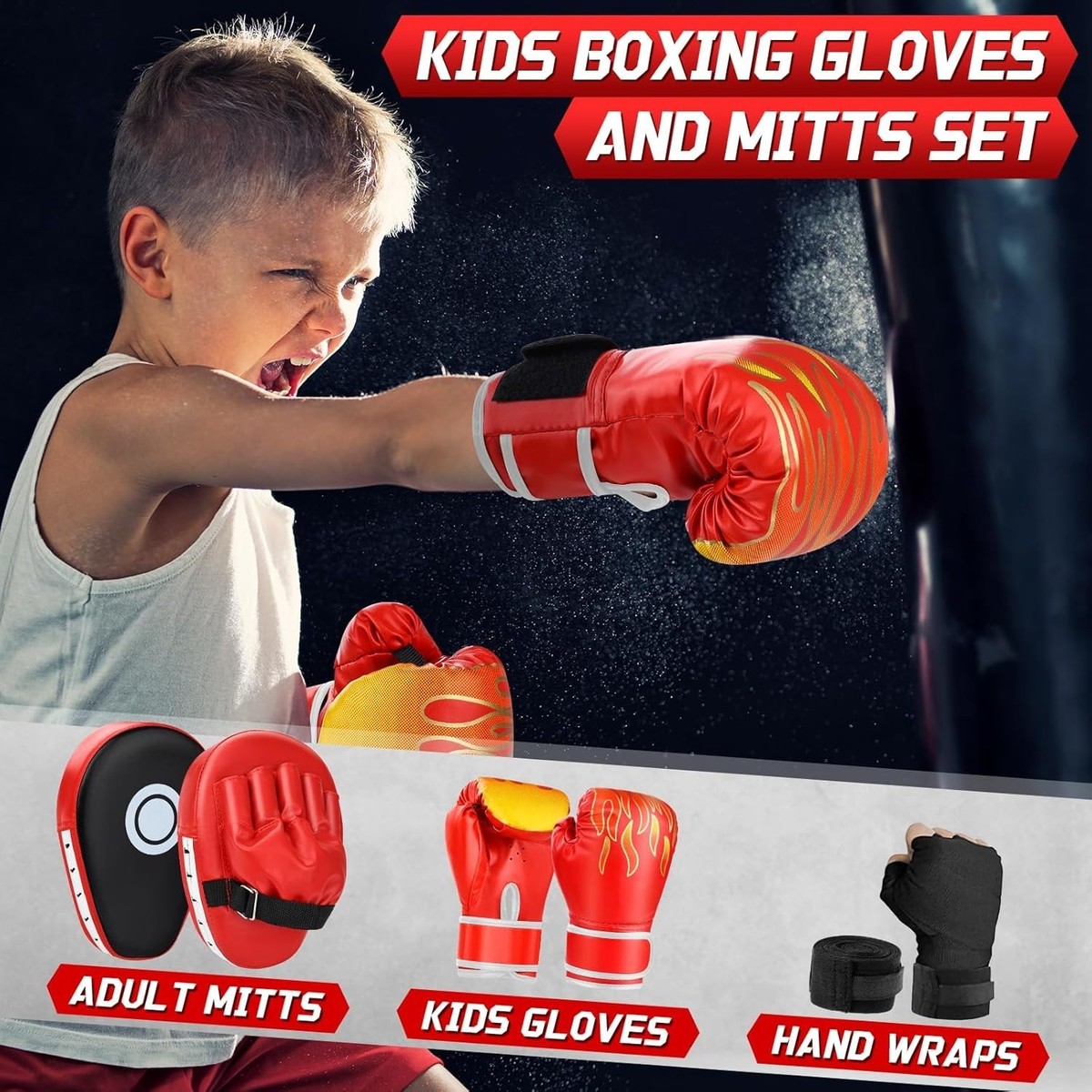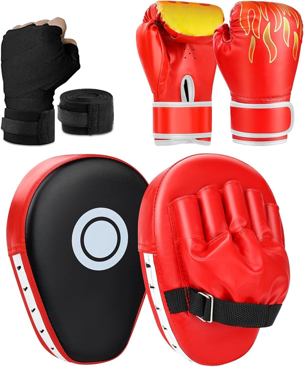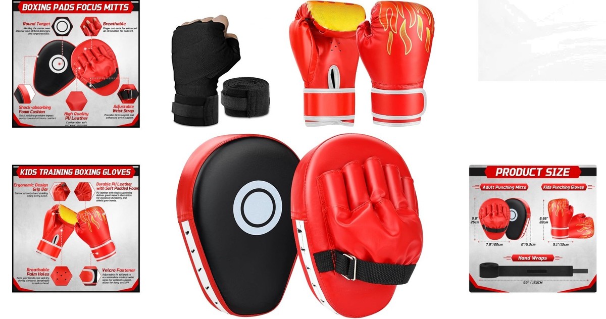 Durable Kids Boxing Set with Punching Mitts & Hand Wraps - Perfect for All Ages