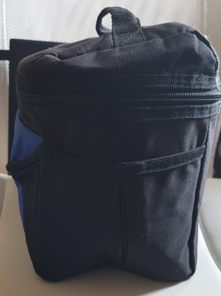 This cooler is in good used condition. There are no holes or stains that I found. The zippers work well. It measures approximately: Height: 8 inches. Length: 9 inches. Width: 6 inches