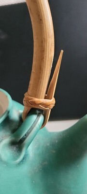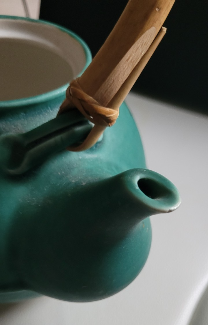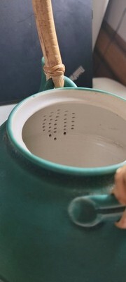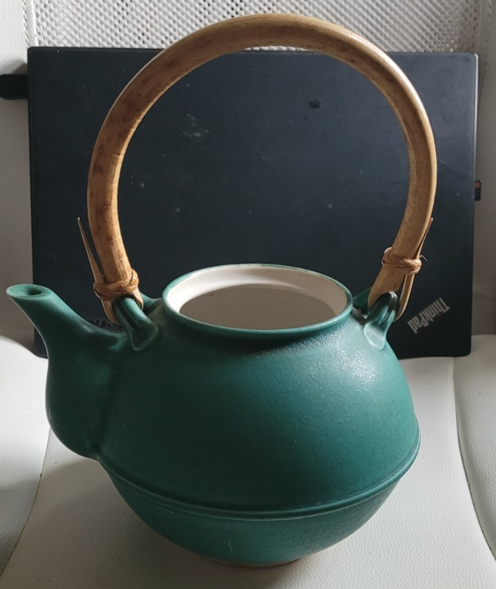 Ceramic Tea Pot No Lid Wood Handle Solid Green Glazed Inside Decorative Nice