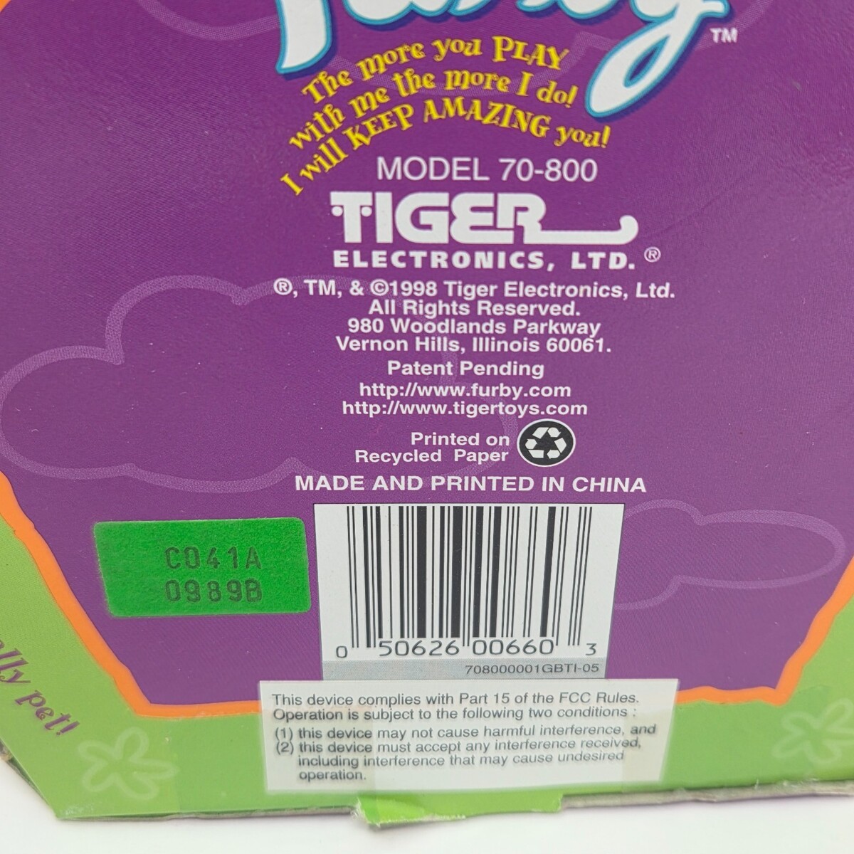 VINTAGE 1998 GRAY FURBY 70-800 NEW SEALED ORIGINAL BOX 1st GEN - DENT