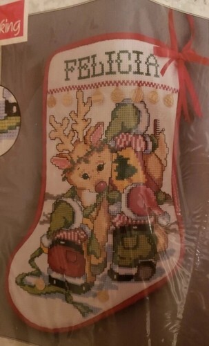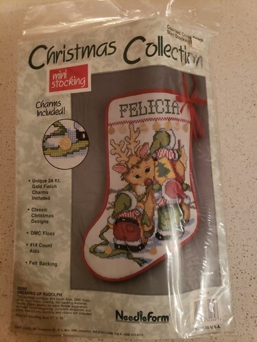 Christmas Stocking Cross Stitch Kit Rudolph Elves 24k Mini Charmable Needleform