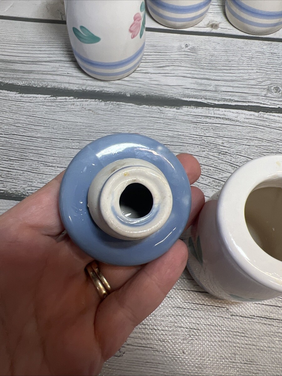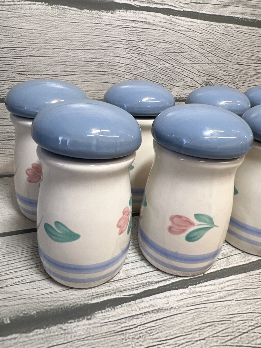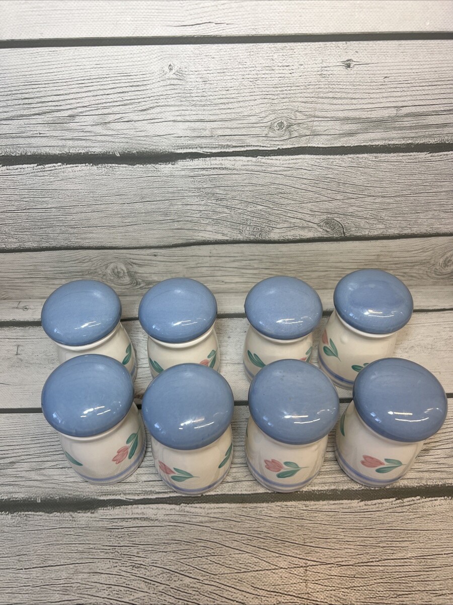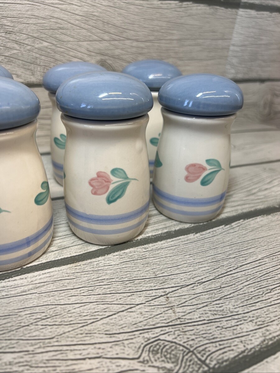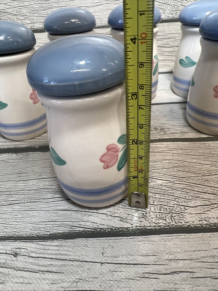 Stoneware By POMERANTZ Floral Cottage 8 Spice Jars RARE Grandma