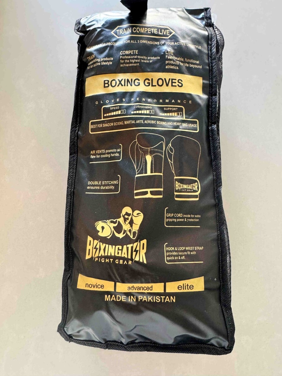 The Gloves by BOXINGATOR are designed for sparring and training in various combat sports like boxing, kickboxing, and MMA. These black gloves weigh 16 oz. and are suitable for adult unisex use. Made in Pakistan, they offer a comfortable fit and durable construction for intense training sessions. Perfect for honing your skills in the ring or training facility, these gloves are a versatile and essential tool for any athlete looking to enhance their punching power and technique.