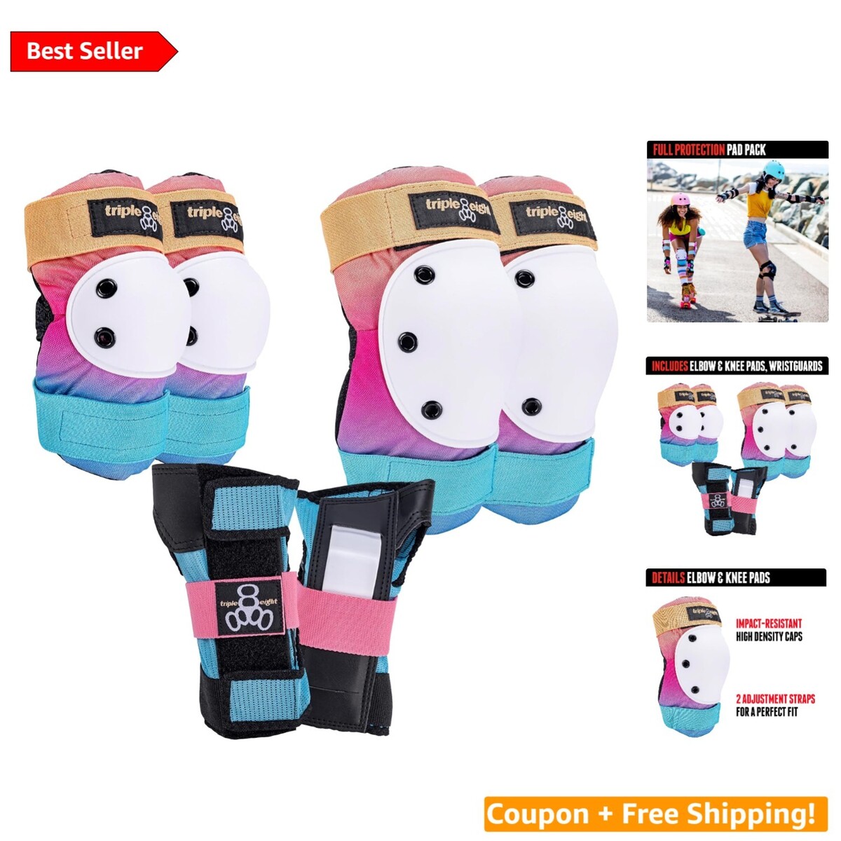 Includes one pair of Kneesaver knee pads, Elbowsaver elbow pads, and Wristsaver wrist guards for comprehensive coverage.