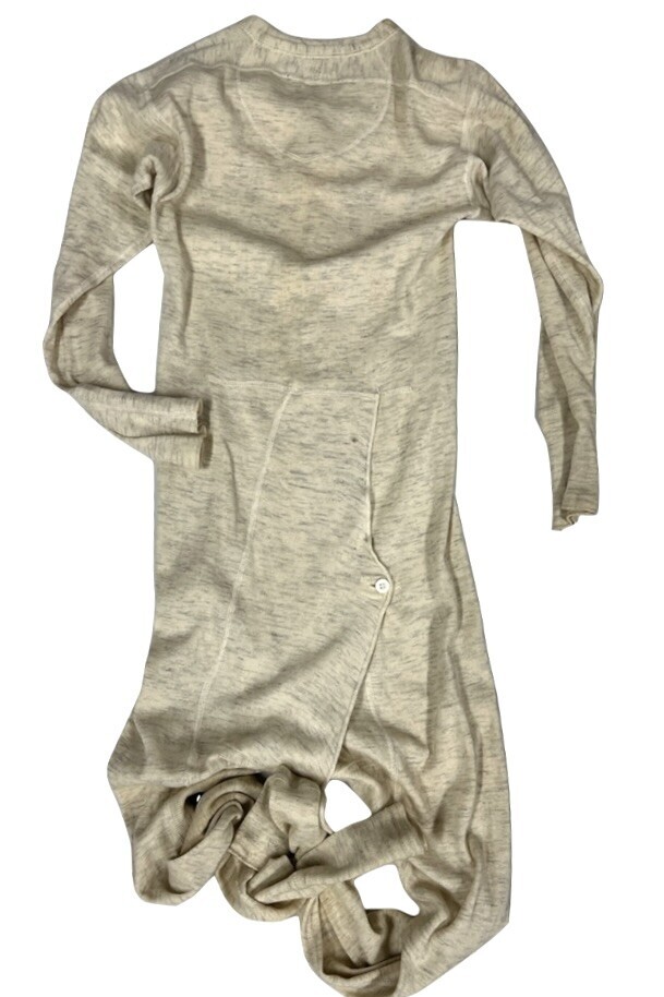 Fine cotton knit (lighter in person than photos suggest), button front, back trap door with button closure.