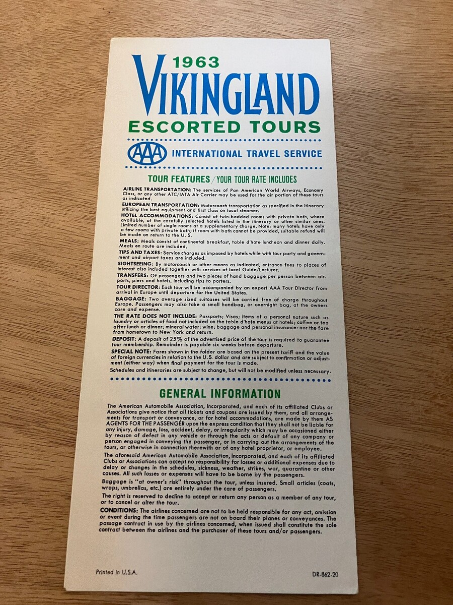 1963 escorted Viking land tours brochure