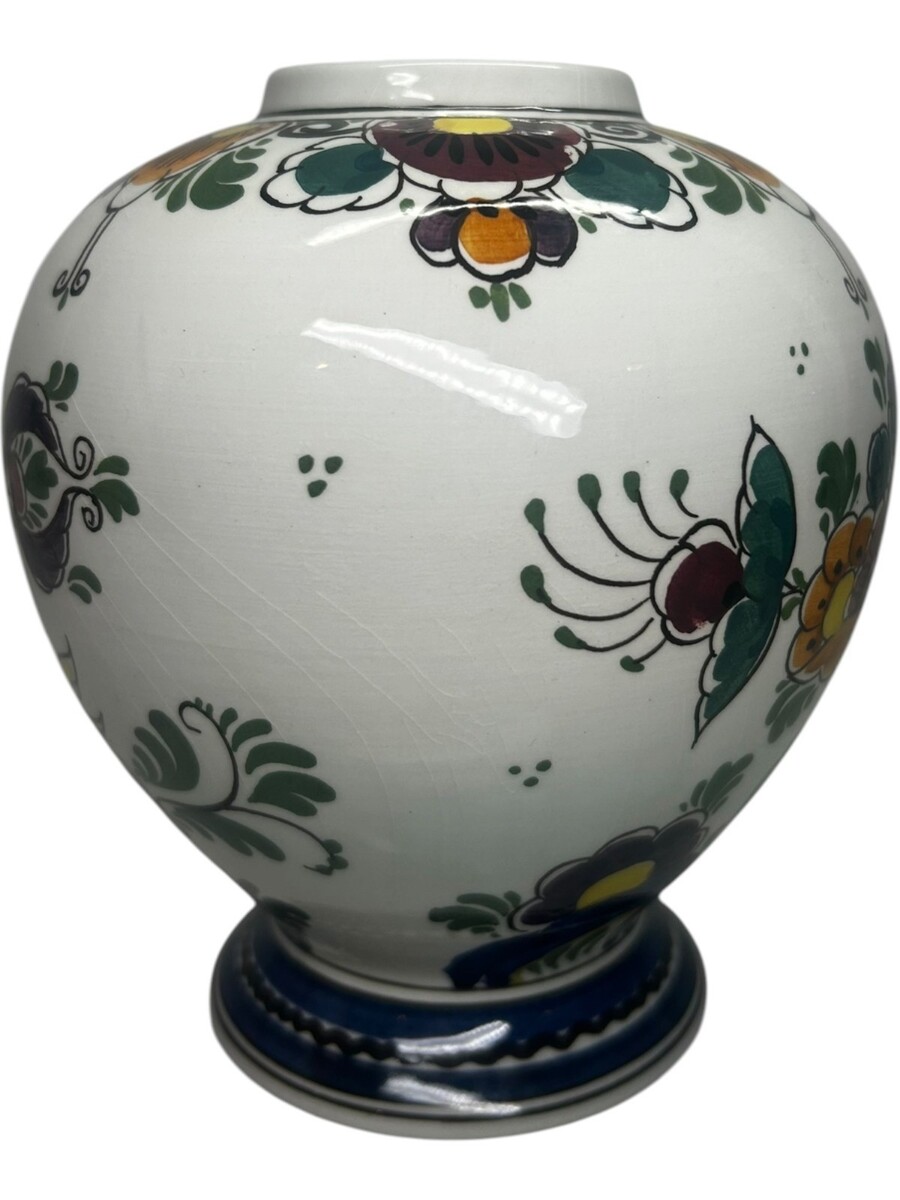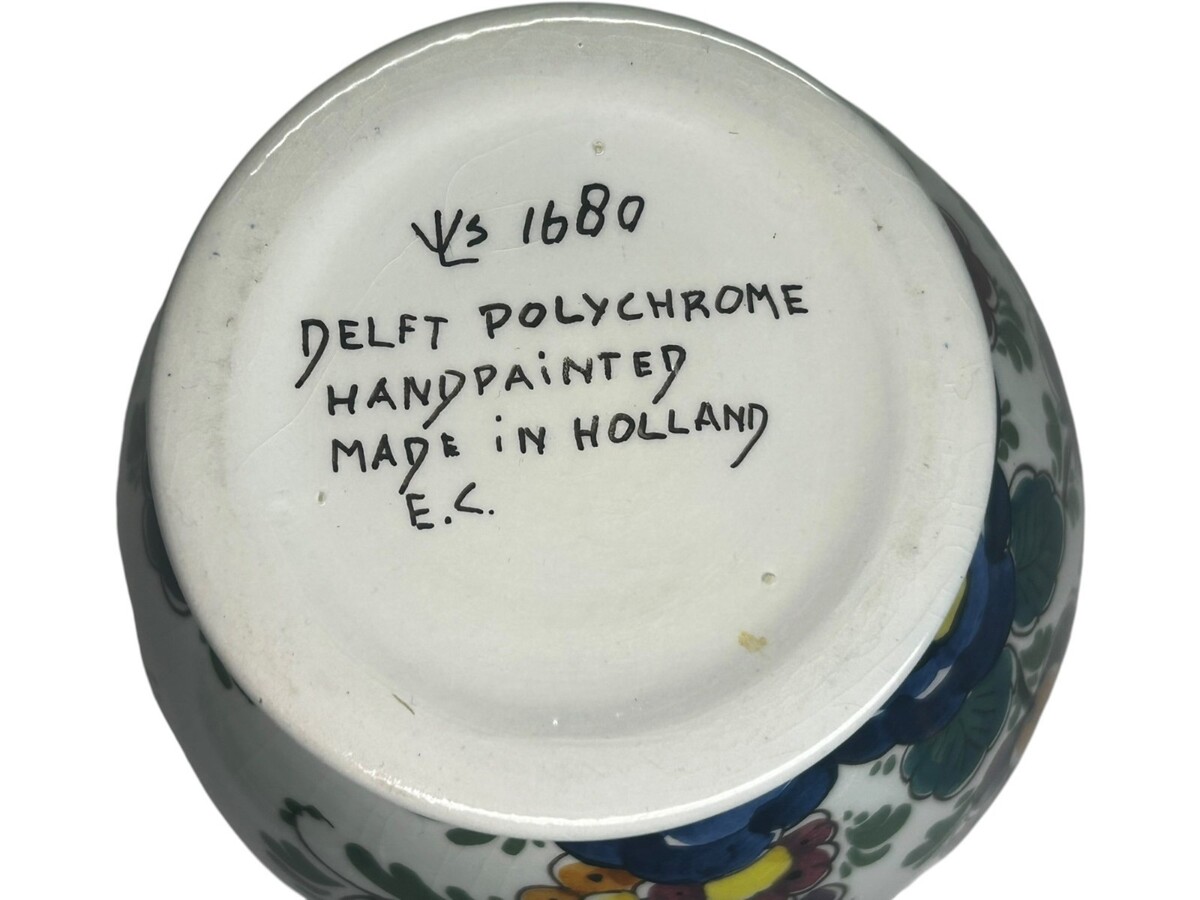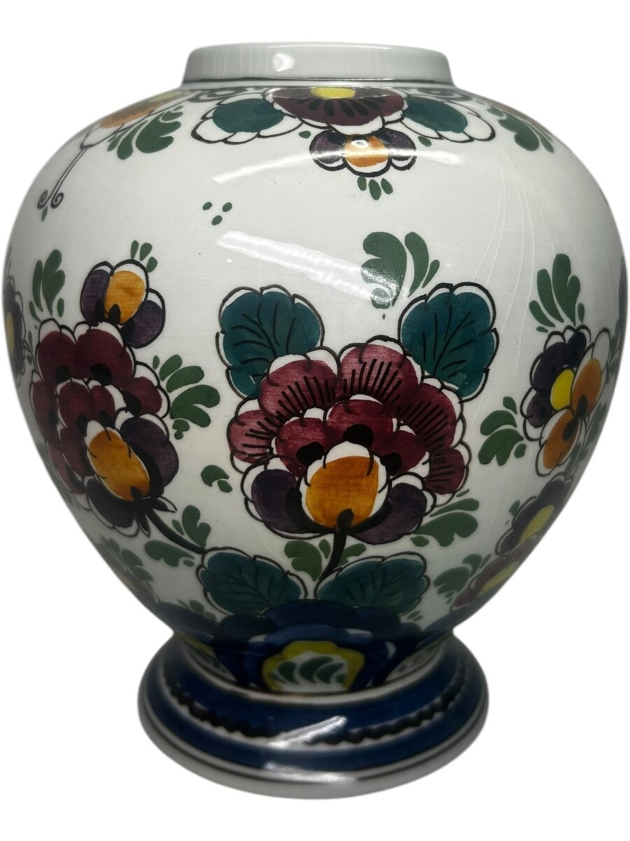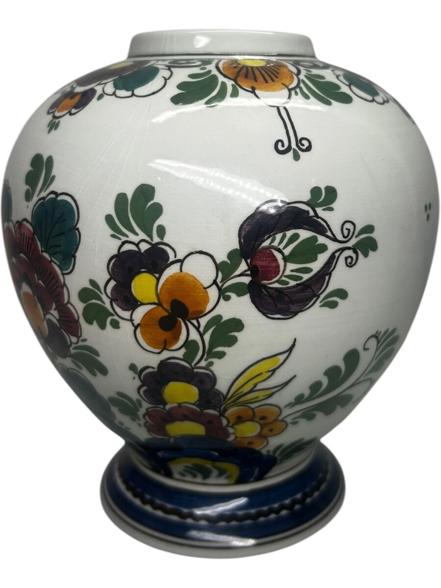 Vintage Delft Polychrome Ginger Jar Vase Hand Painted Holland Floral 5.5” MINT