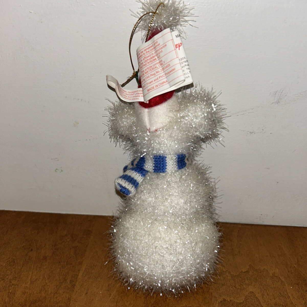 Disney Mickey Mouse Snowman Fuzzy Ornament White Christmas 2001 A1