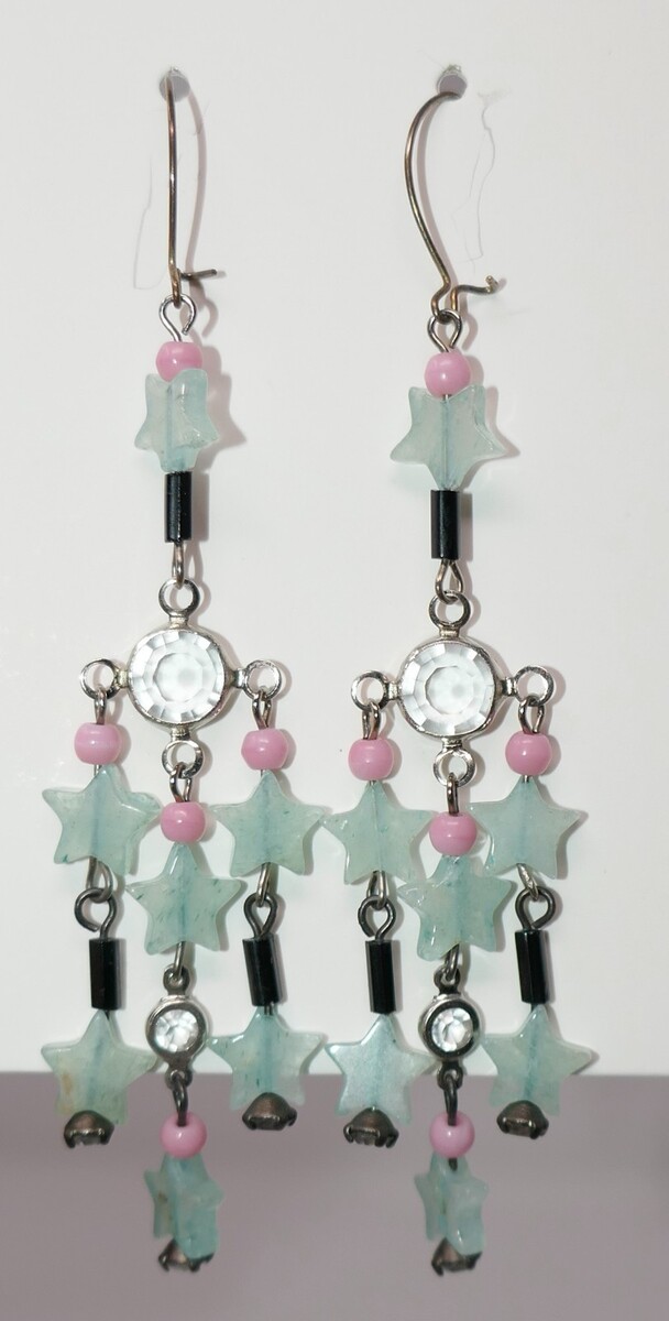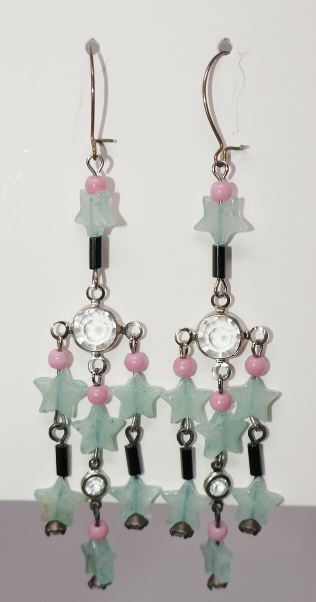 The Lucy Isaacs Vintage Blue Star Dangle Earrings are a unique and handmade piece of fashion jewelry perfect for special occasions. These dangle earrings measure approx. 3" long. Made in the United States, these earrings exude a theme of love and are a perfect accessory for women looking to add a touch of vintage charm to their outfit.