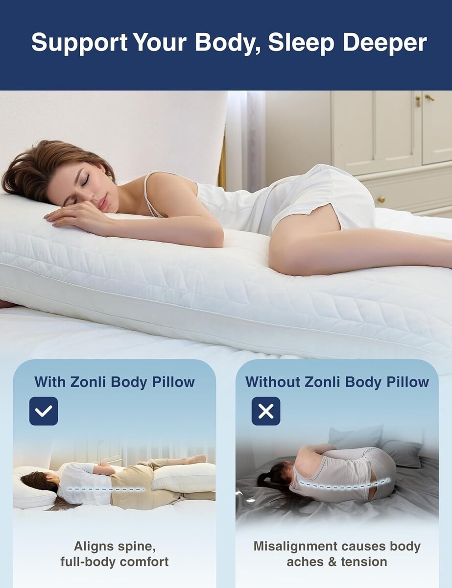 Adjustable Long Body Pillow 20x54 - Perfect for Pregnant Women & Side Sleepers