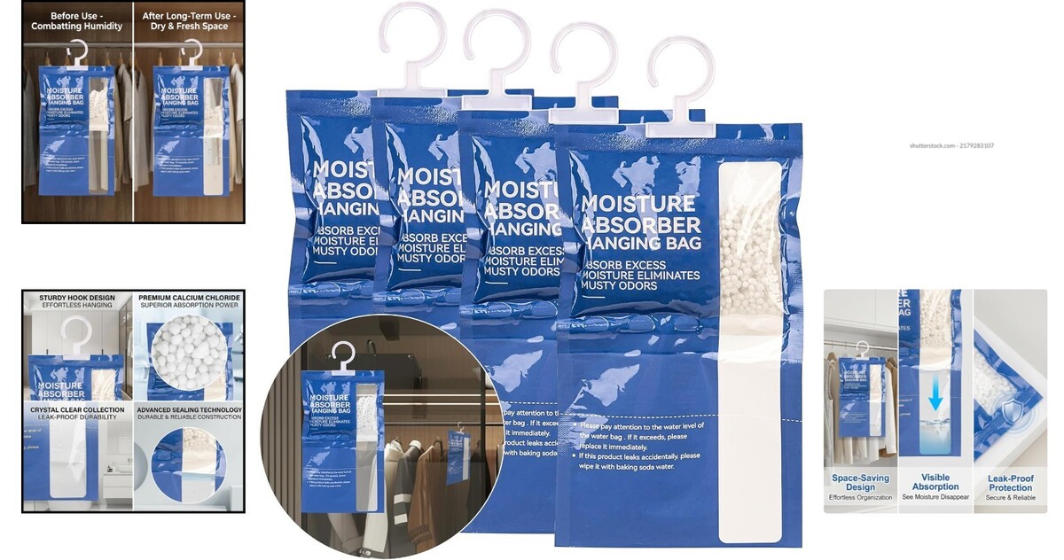Effortless Humidity Control - 4 Hanging Dehumidifier Bags for Every Space