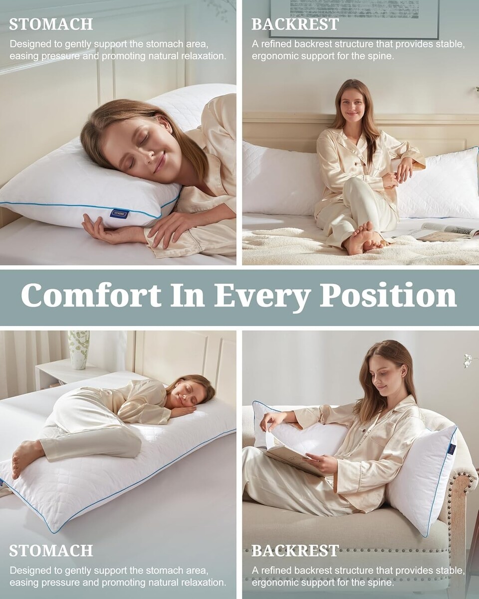 Ideal for all sleeping positions: side sleepers, back sleepers, and tummy sleepers.