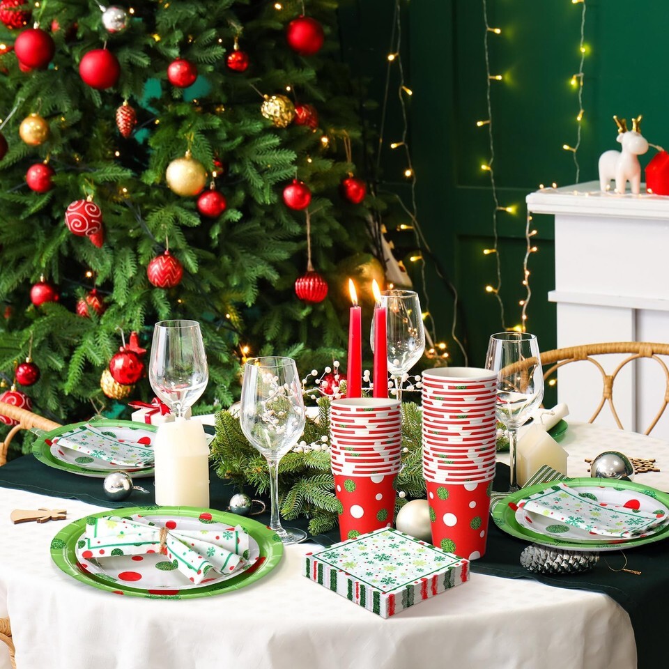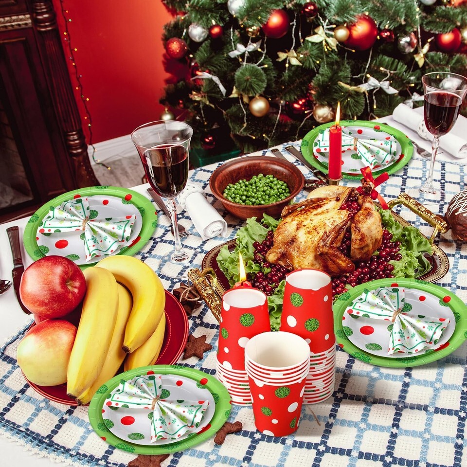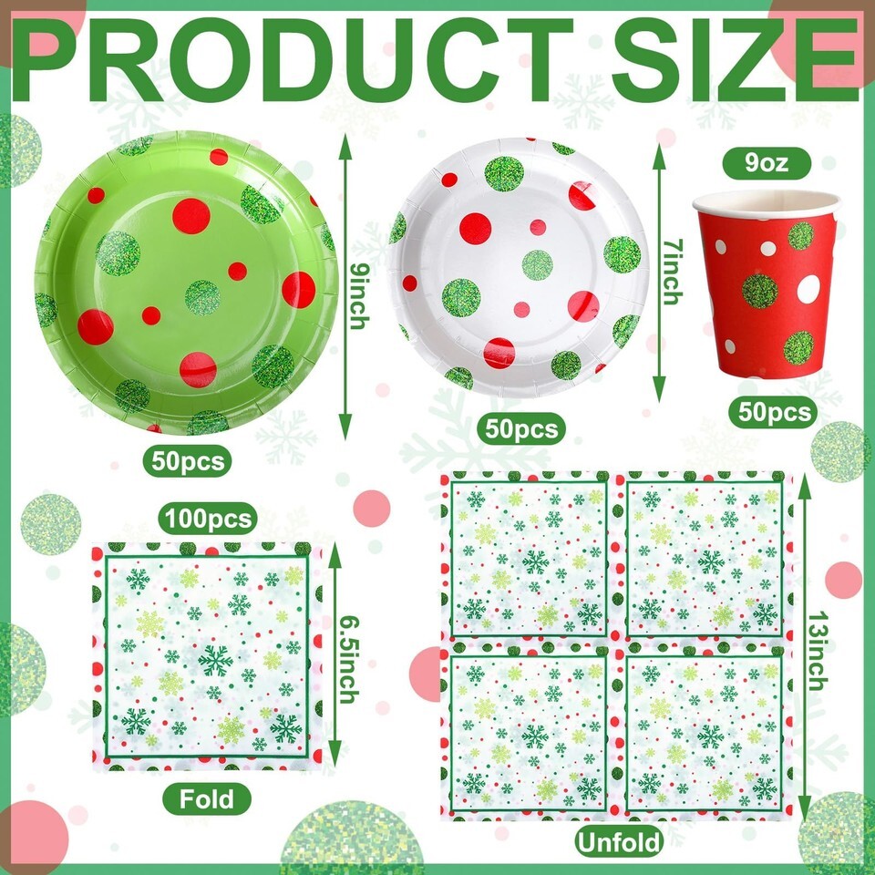 Hsei 250Pc Christmas Green Disposable Plates Napkins Cups Party Tableware Set