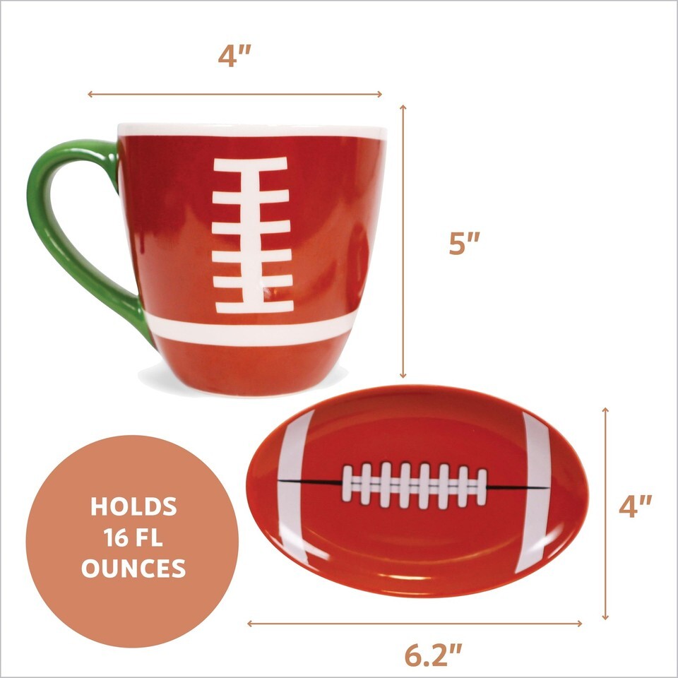 Football Coffee Mug Set w/ Spoon & Coaster - Ceramic Soccer Themed Gift