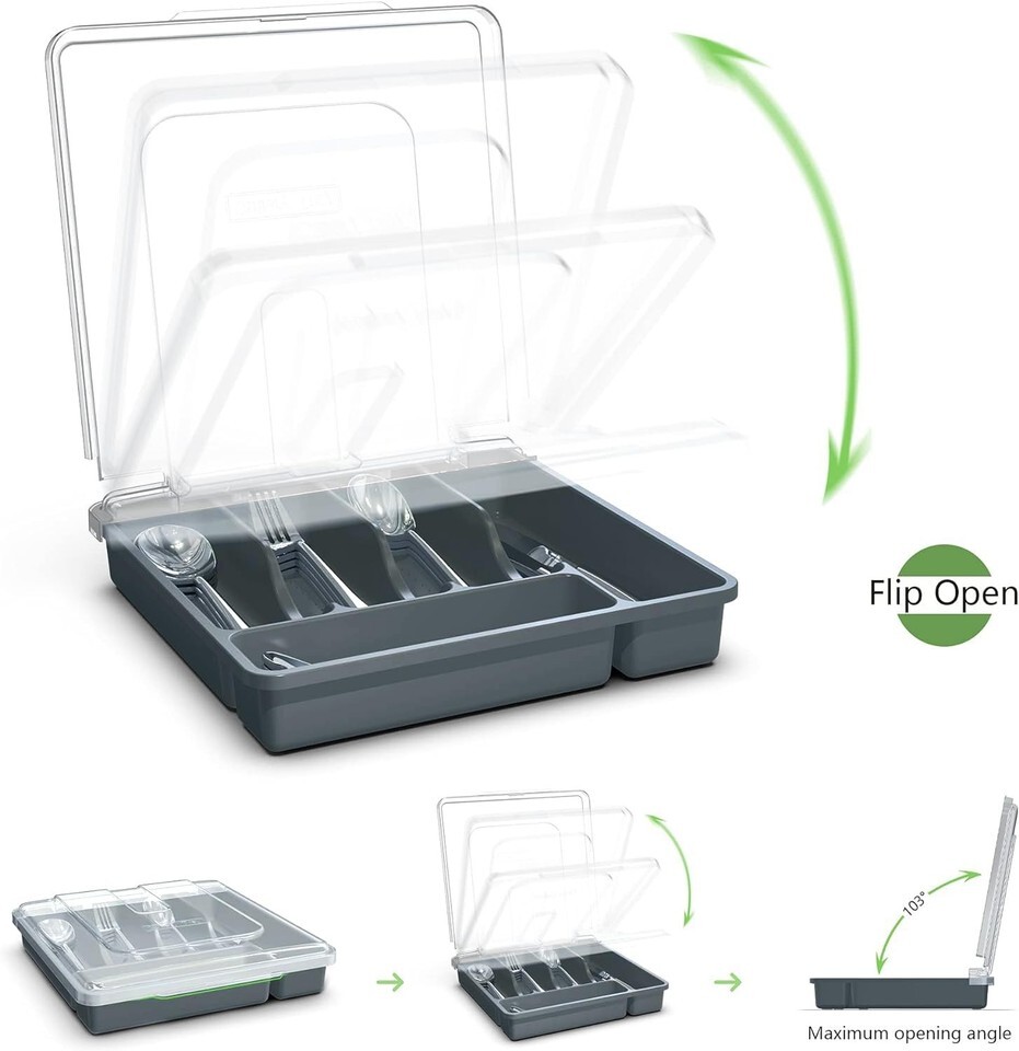 YICOCHI Utensil Holder With Lid, Silverware Tray Drawer Organizer, Gray