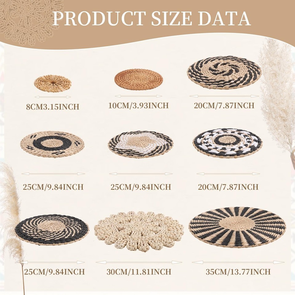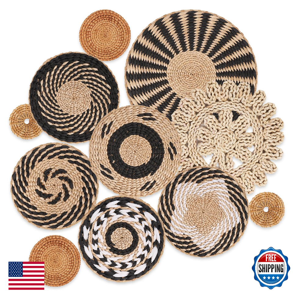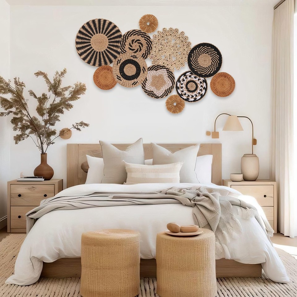 Boho Wall Basket Decor Set of 11 Woven Baskets Wall Art Rustic Farmhouse