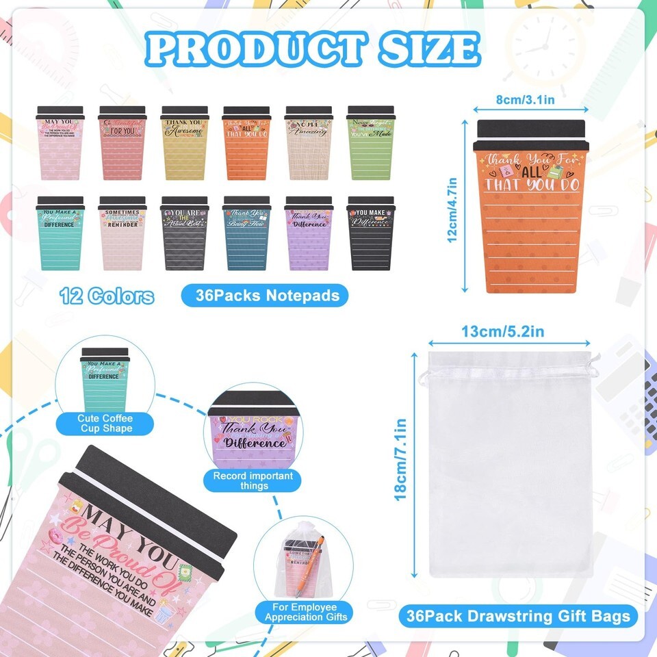 Mkway 36 Set Employee Appreciation Gifts Bulk - Coffee Cup Notepad + Pen + Bag