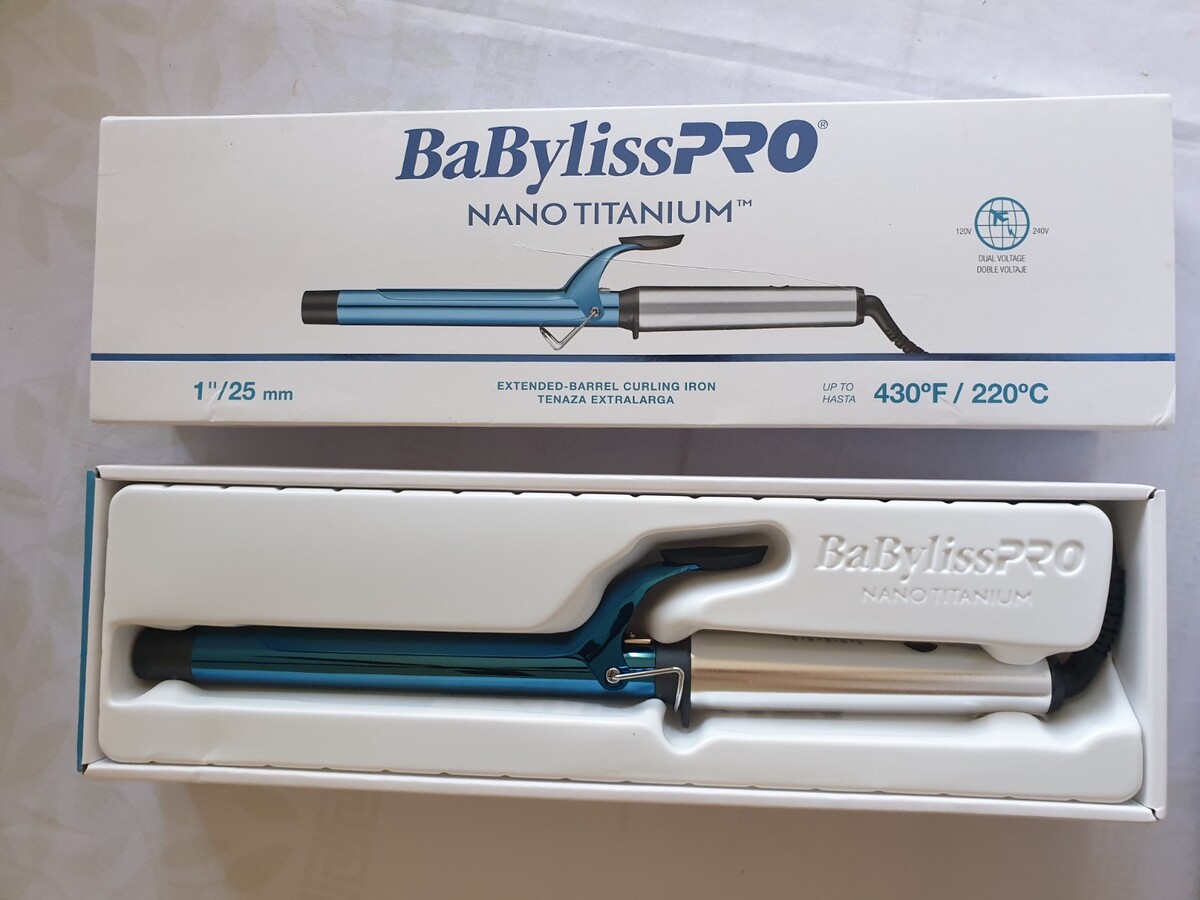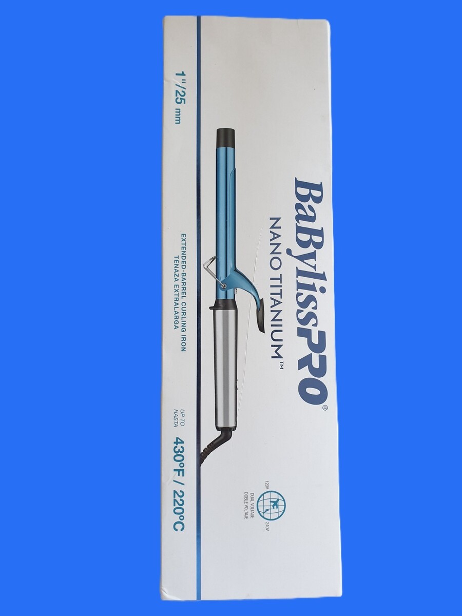 BaBylissPRO Nano Titanium Spring Curling Iron Blue 1" Ceramic-Coated Barrel.