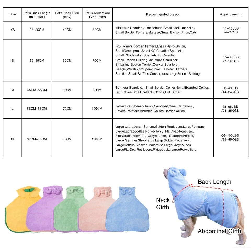 Fnaobai Pet Bathrobe for Dog Cat Absorbently Quick Drying Coat Cute Dogs Bath To