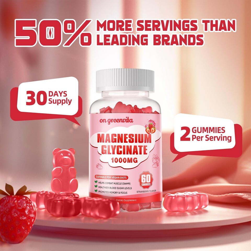 Magnesium Glycinate Gummies 1000mg Sugar Free Magnesium Potassium Supplement Vit