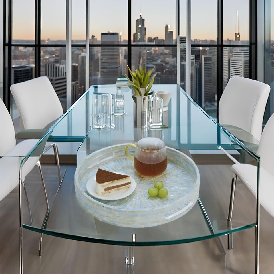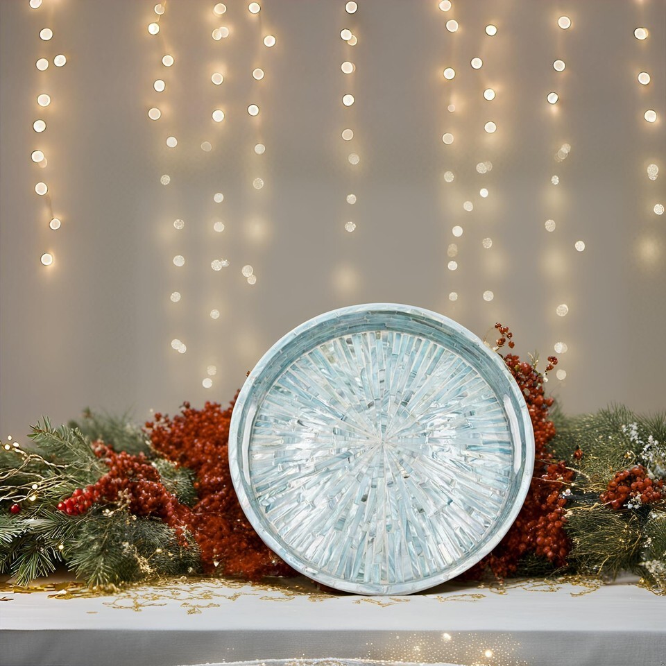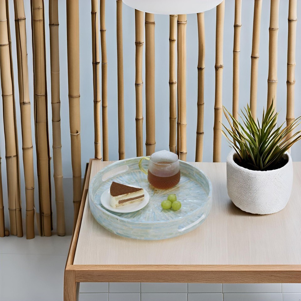 PEMAR 12.6” Mother of Pearl Round Serving Tray with Handles, Decorative Nacred W