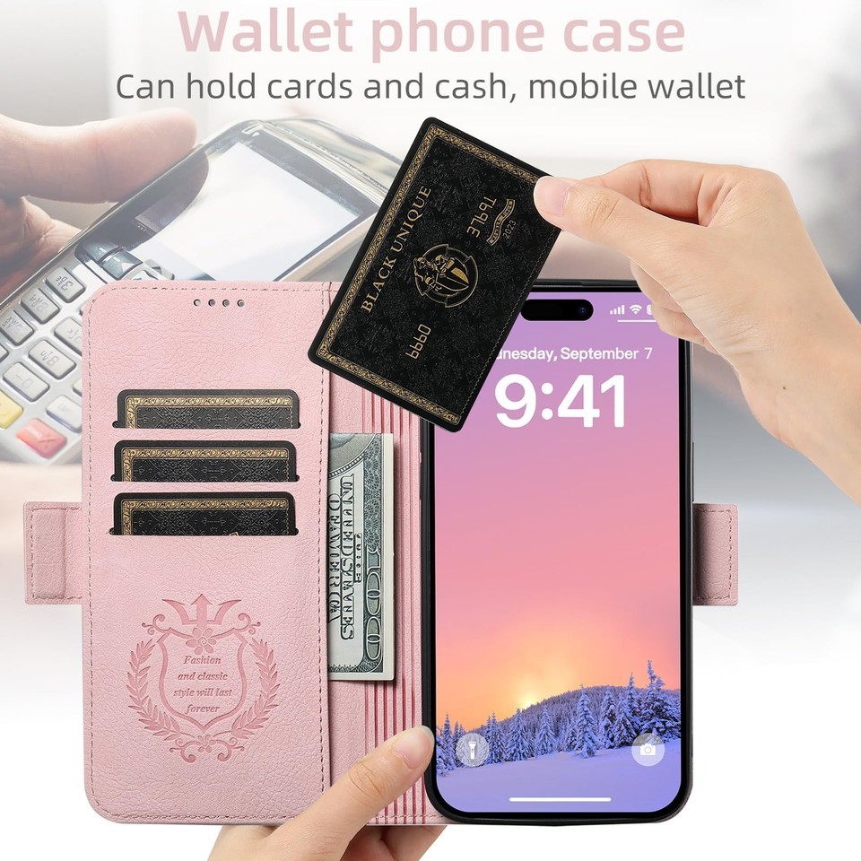 SINIANL iPhone 14 Pro Max Wallet Case MagSafe Leather Cover Card Slots Pink