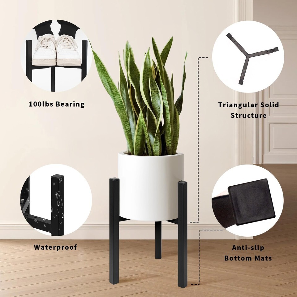 IZIDDO 2 Pack Adjustable Plant Stand Indoor Black Metal Planter Stands Outdoor M
