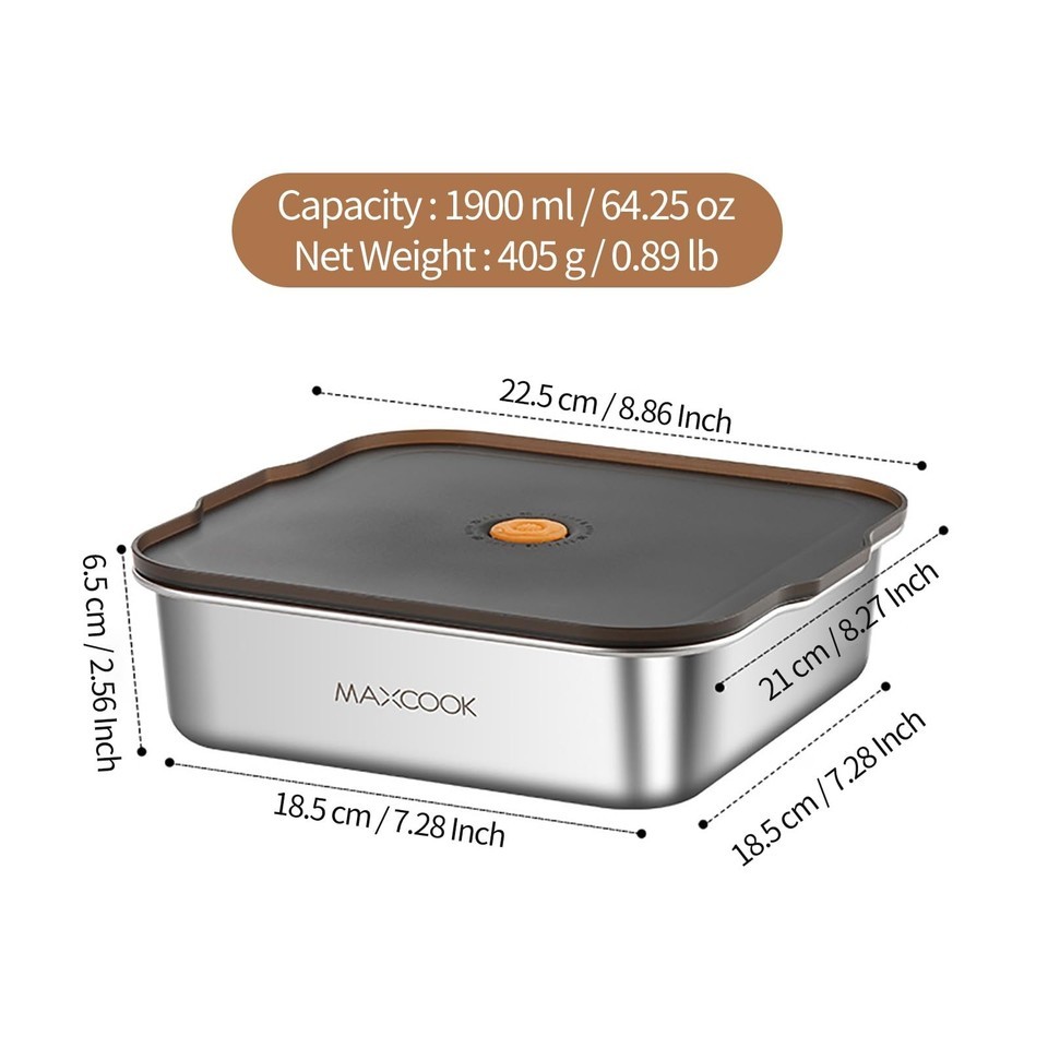 MAXCOOK 64oz Stainless Steel Food Storage Container w/ Lid - Leakproof