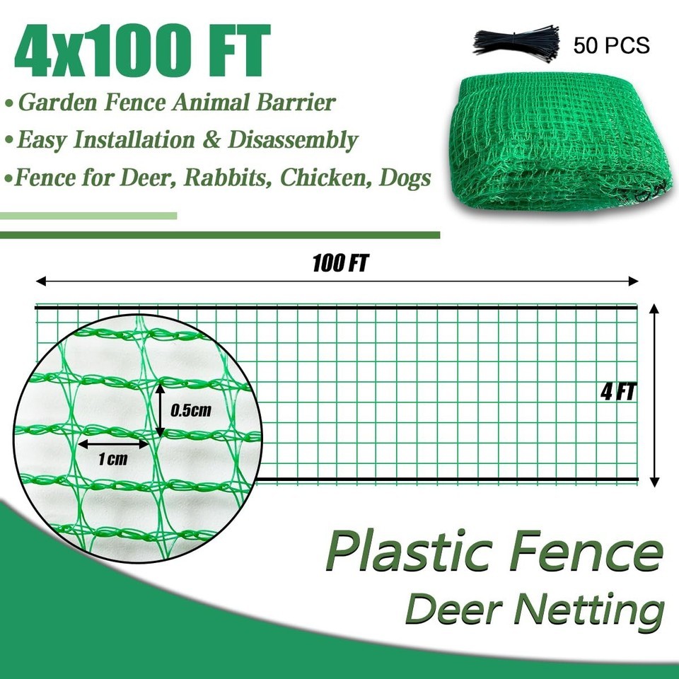 Hortifan Garden Fence Temporary Fence, 4'x100' with 50 Zip Ties, Plastic Fencing