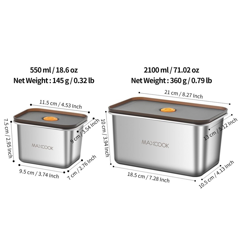 MAXCOOK Stainless Steel Food Containers with Lids, 18.6 oz & 71 oz Food Storage