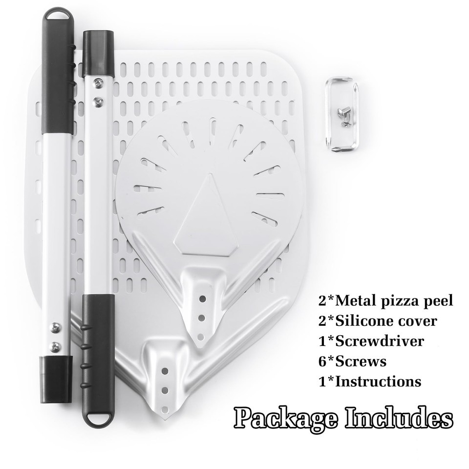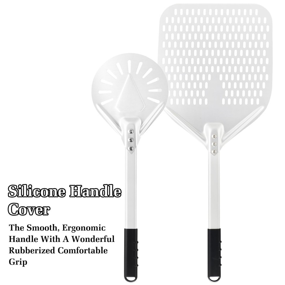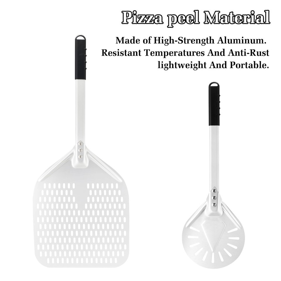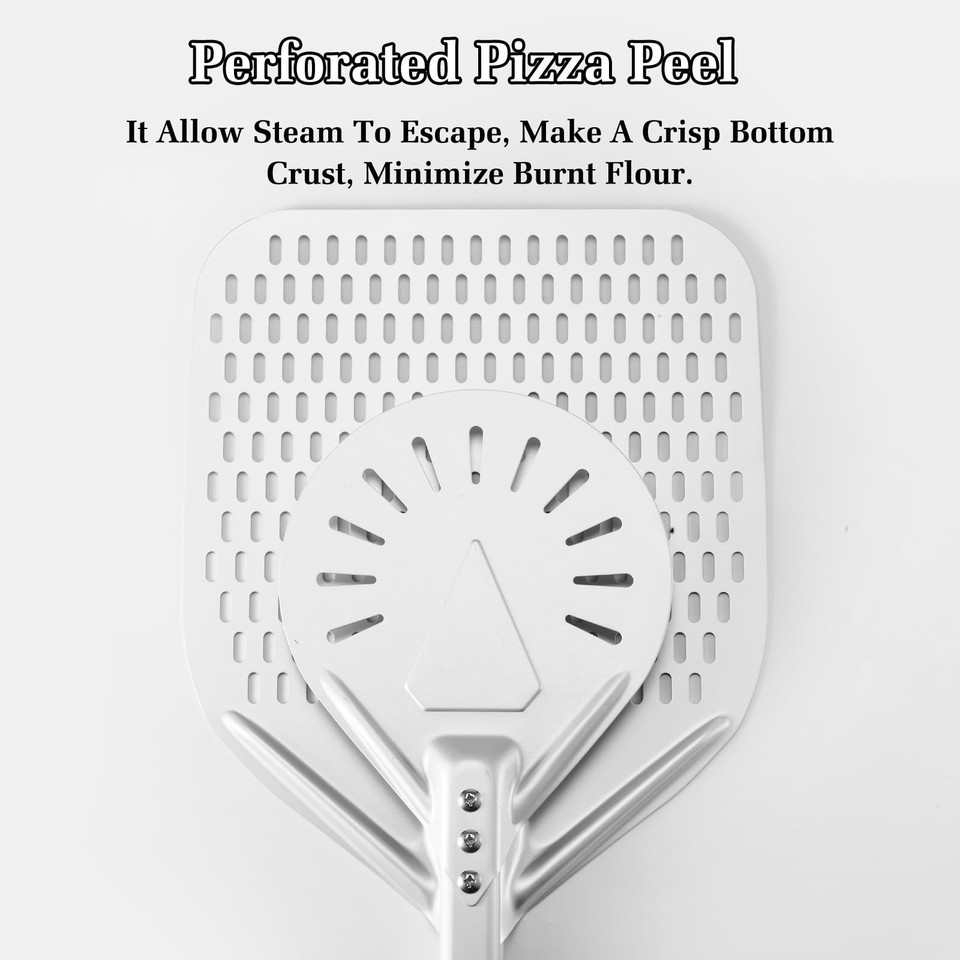 Newmeto 12" & 7" Perforated Pizza Peel Set w/ Metal Handle - Crisp Crust