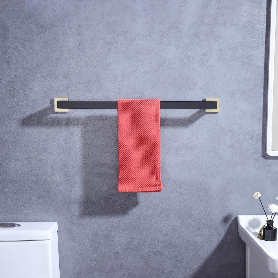 LANC 20" Black/Gold Wall Mount Bathroom Hand Towel Bar SUS 304 Stainless Steel