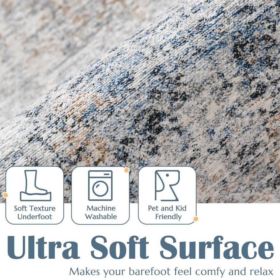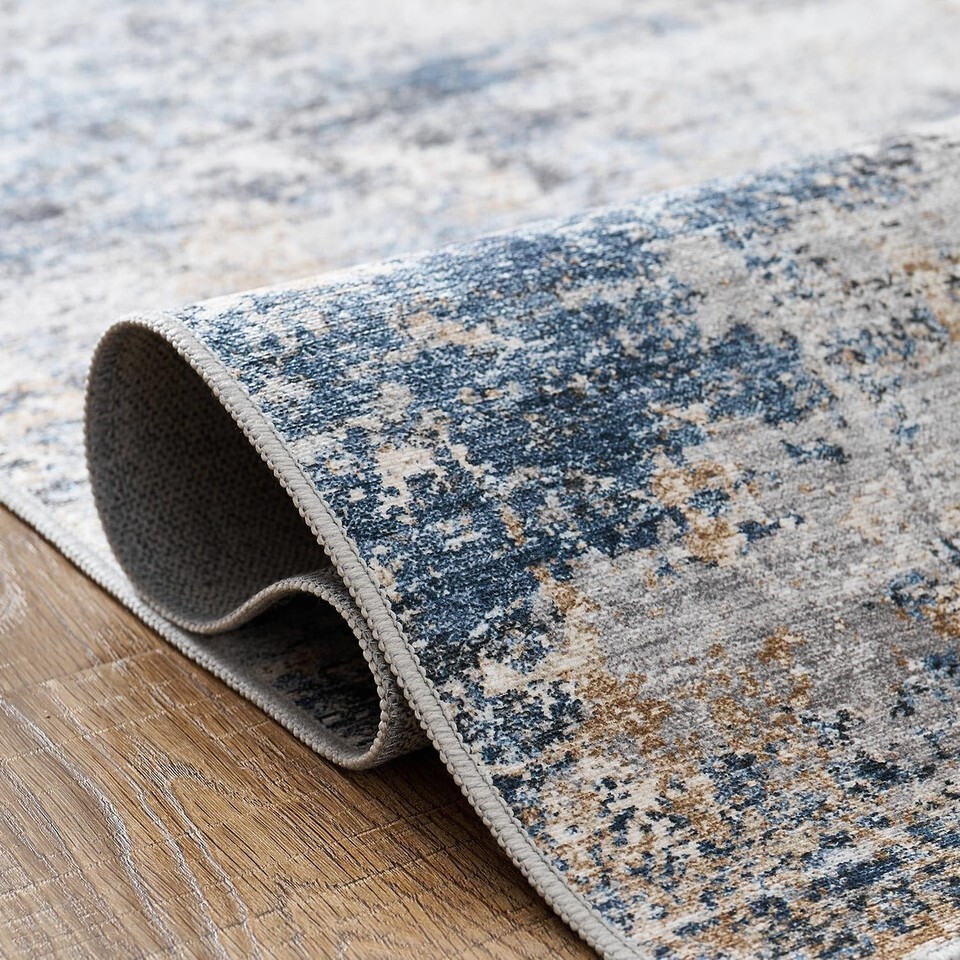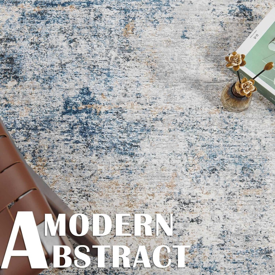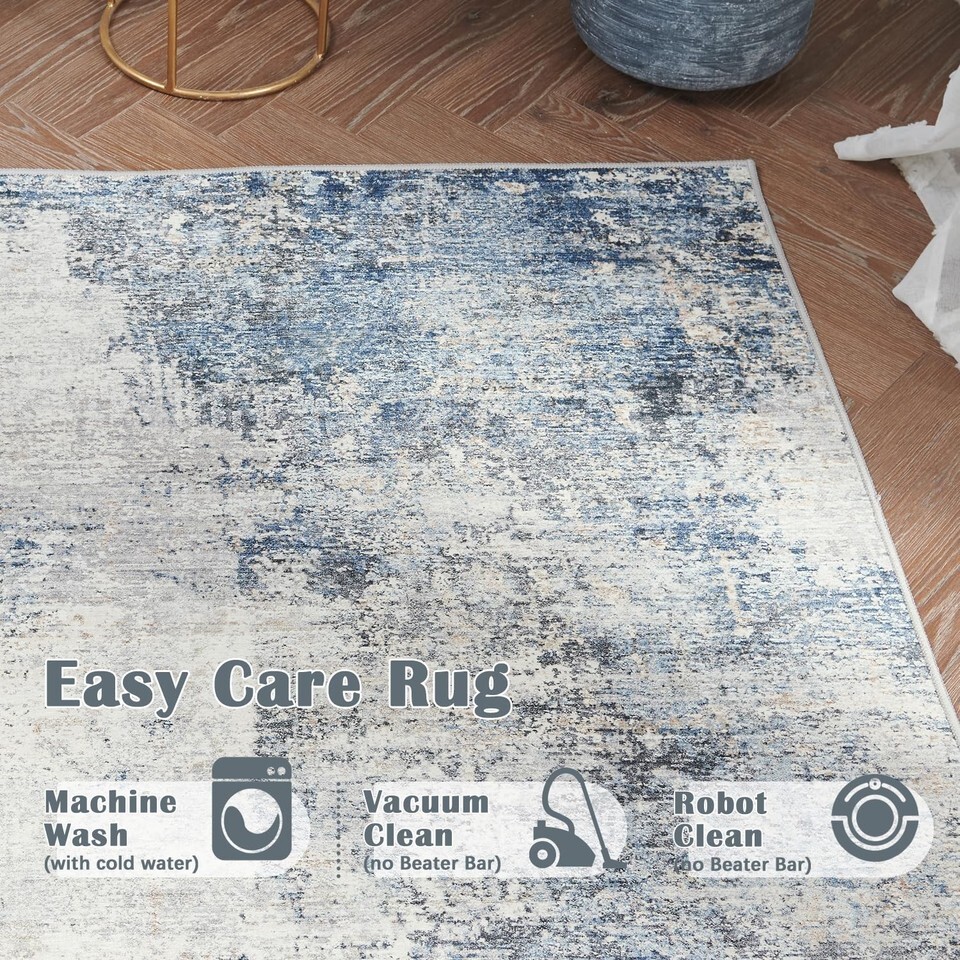 jinchan Washable Runner Rug 3x7 Modern Abstract Hallway Carpet Blue Multi