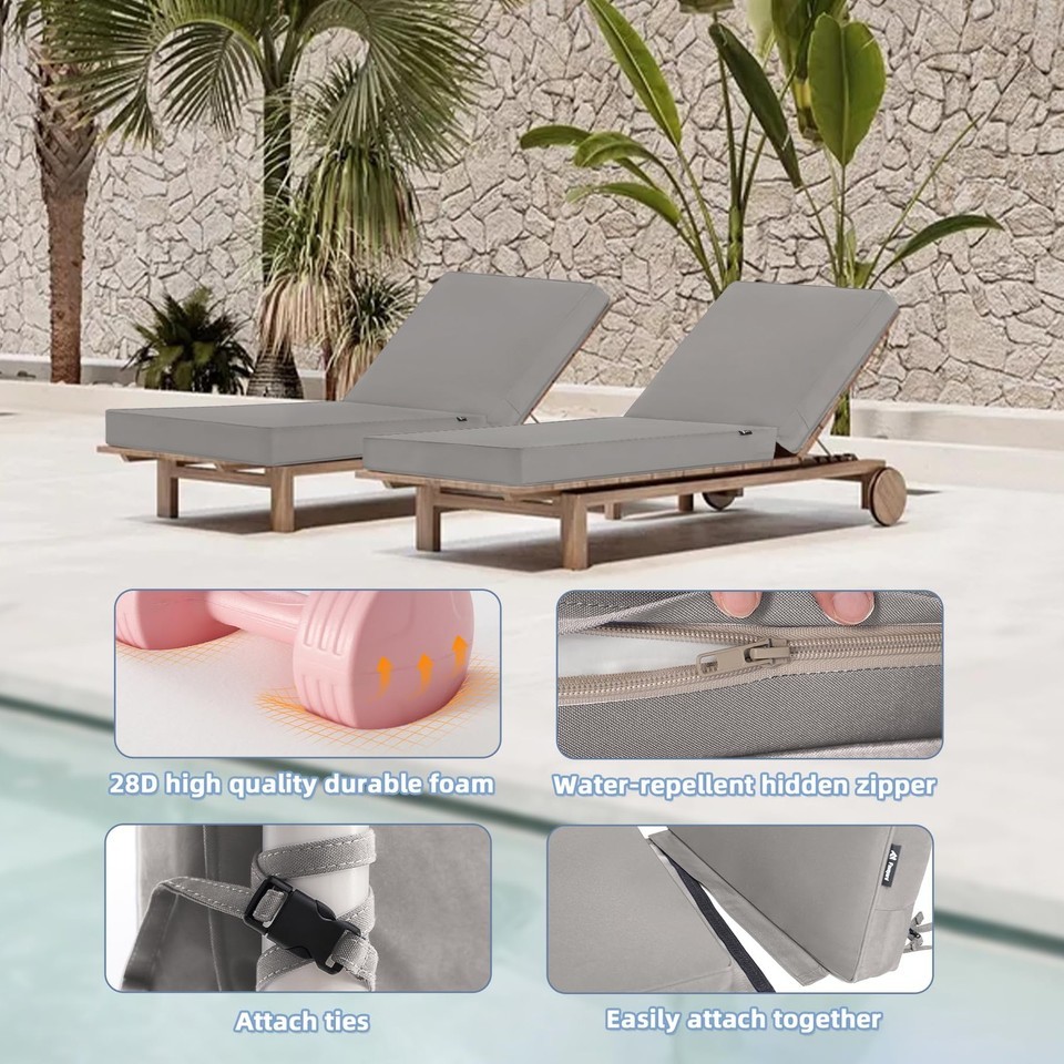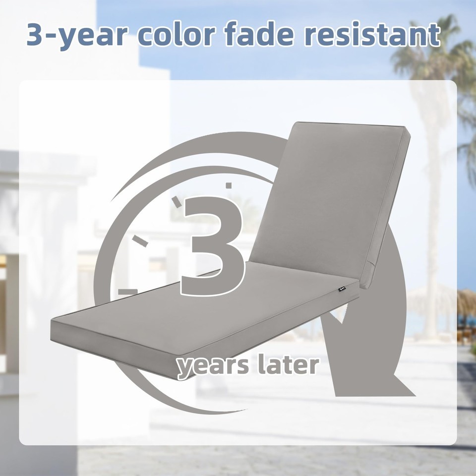 Favoyard Outdoor Chaise Lounge Cushions 72x21x3 Waterproof Fade Resistant Remova