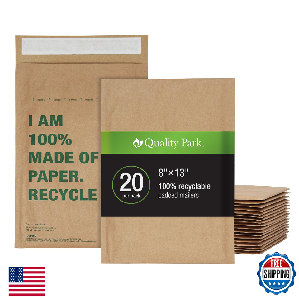 Quality Park 8x13 Curbside Recyclable Mailers Brown Kraft Paper Padded Self Seal