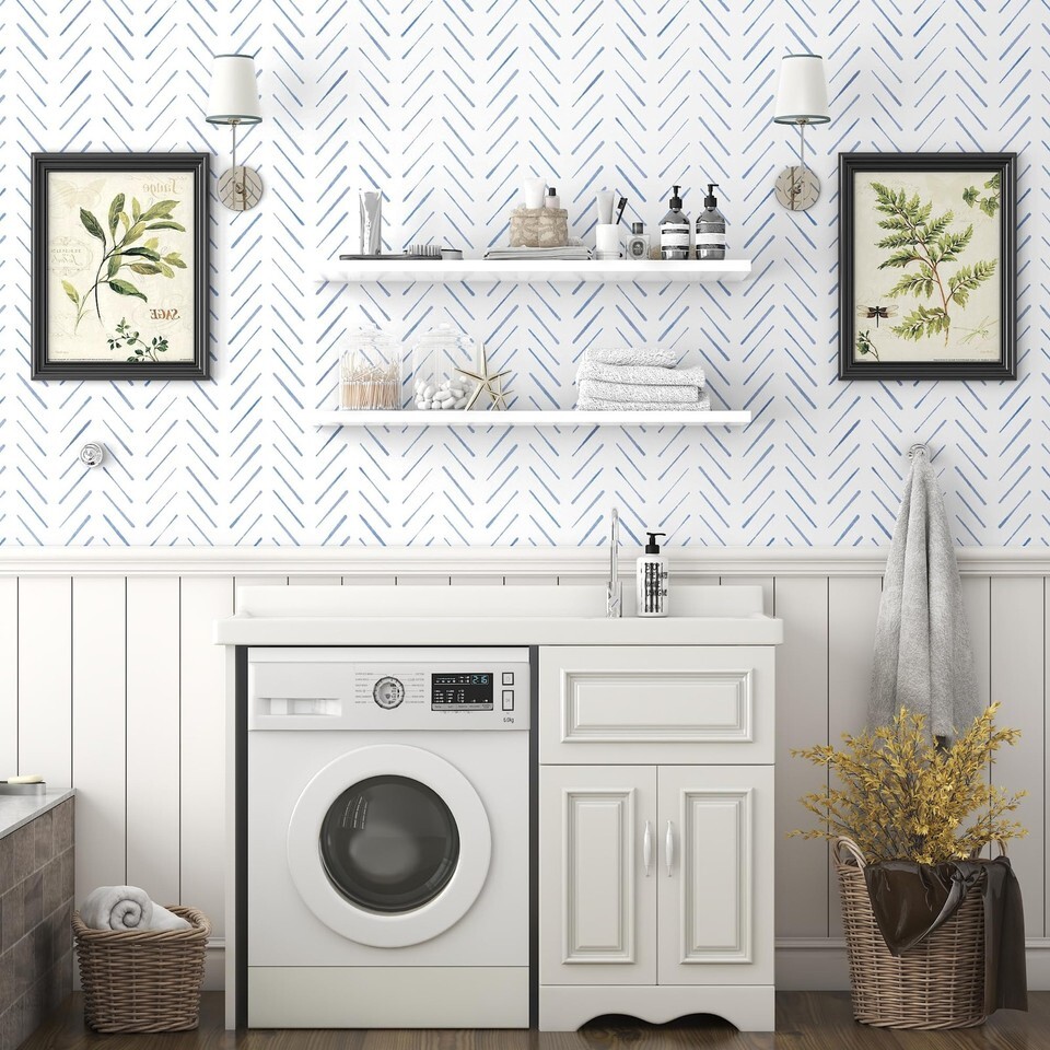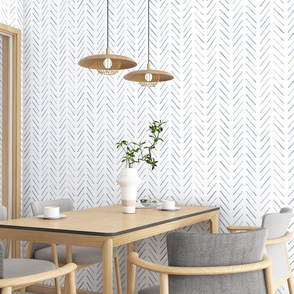 Peel and Stick Wallpaper Herringbone Striped Wallpaper 17.3"x393" White and Blue