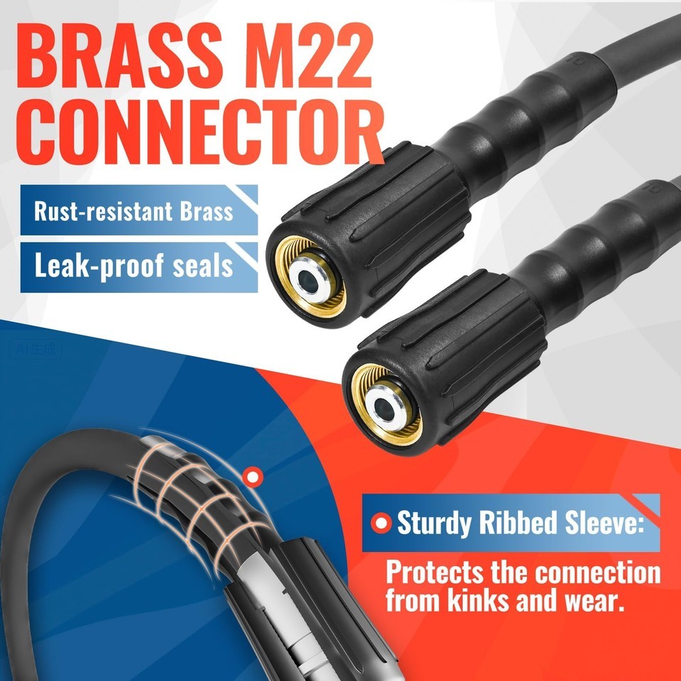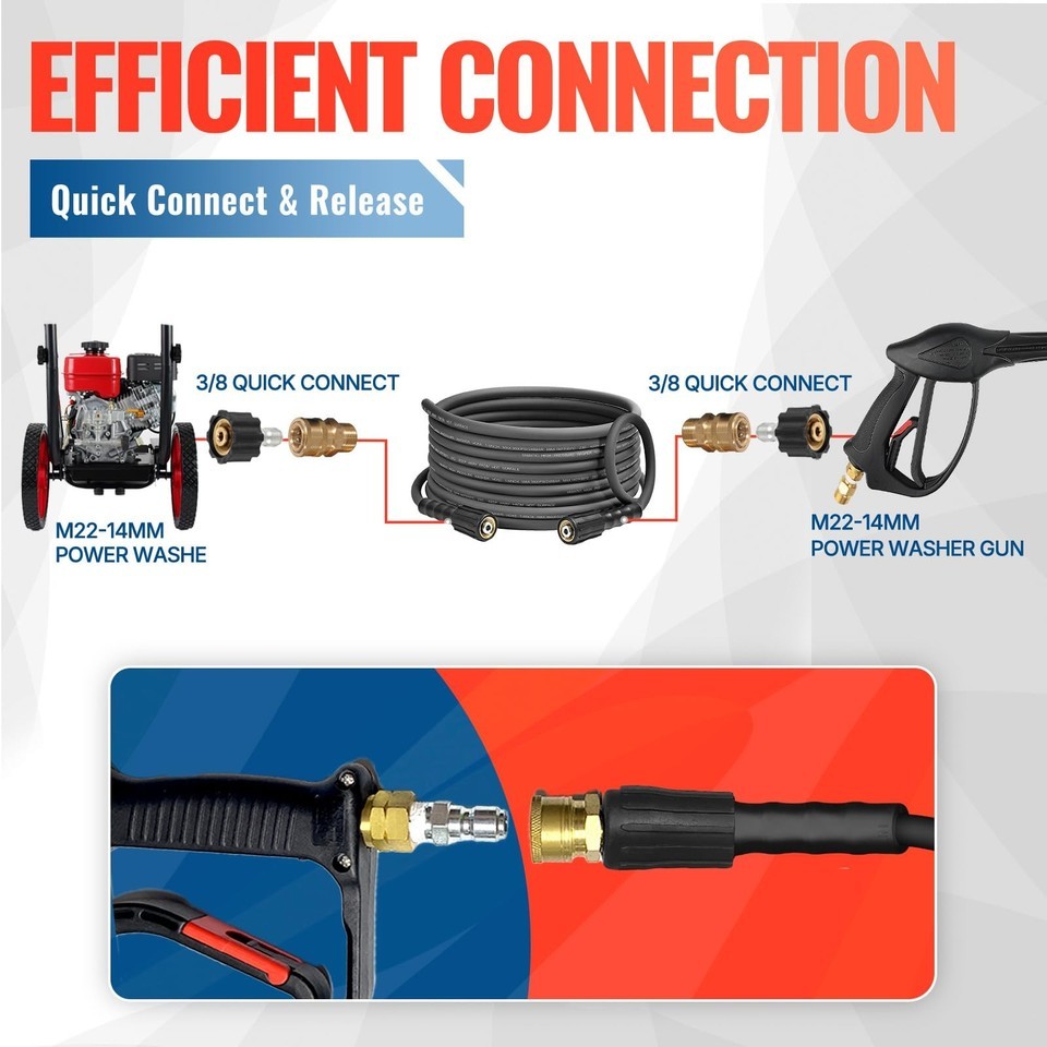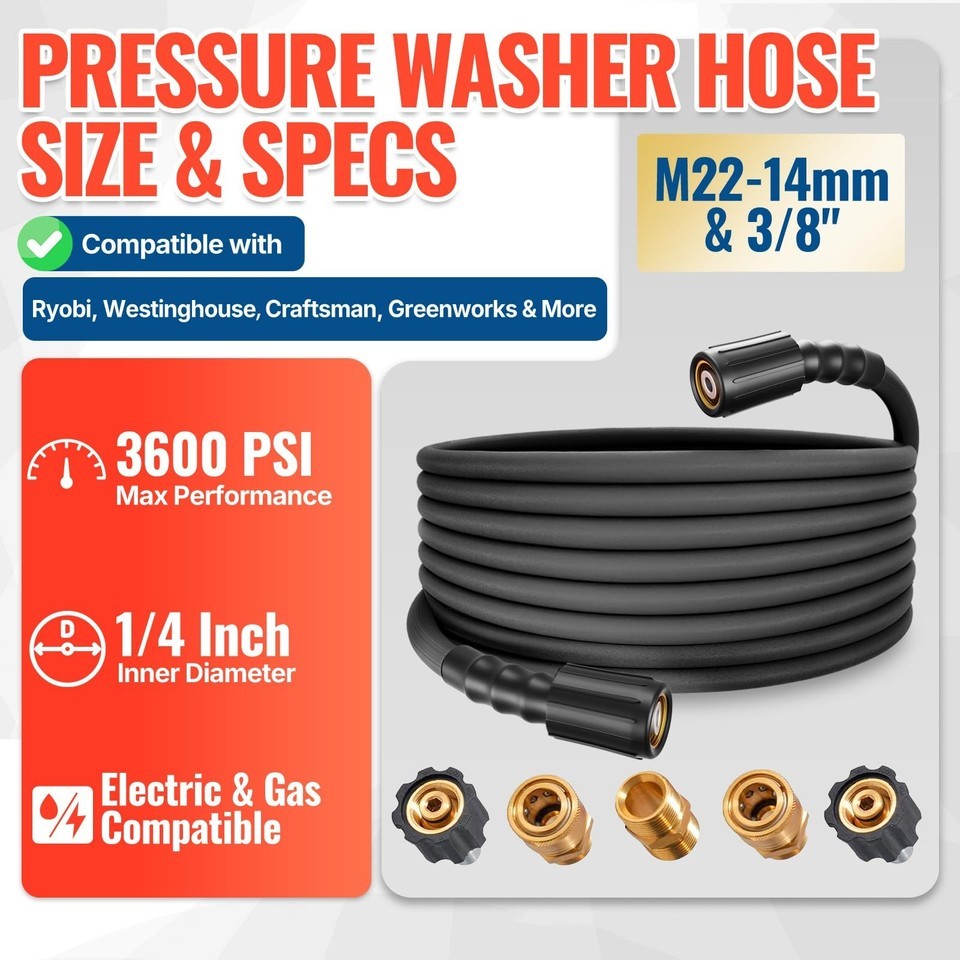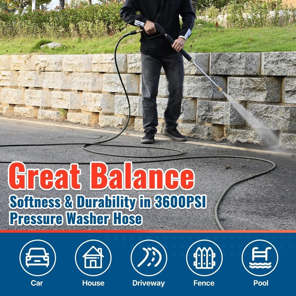 YAMATIC 50ft 3600 PSI Pressure Washer Hose Quick Connect Kink Resistant Heavy Du